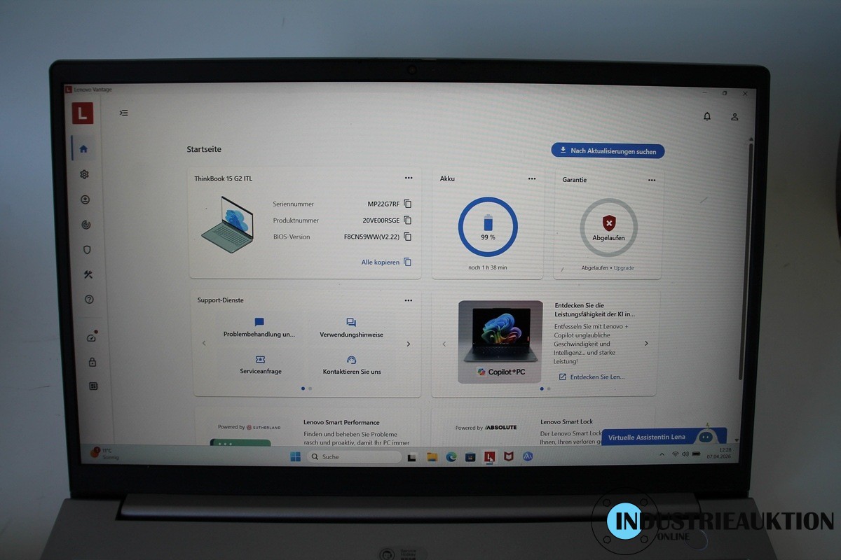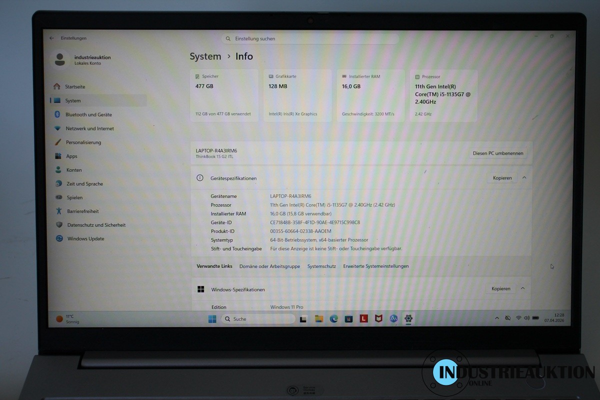 Laptop LENOVO ThinkBook 15 G2 ITL, 15.5" Display, i5-1135G7 11. Gen., 2.4 GHz, 16 GB RAM, 500 GB SSD, Win 11 Pro, Herstellung 09/21, Kapazität Akku 99 %, USB-C Dockingstation, Netzteil