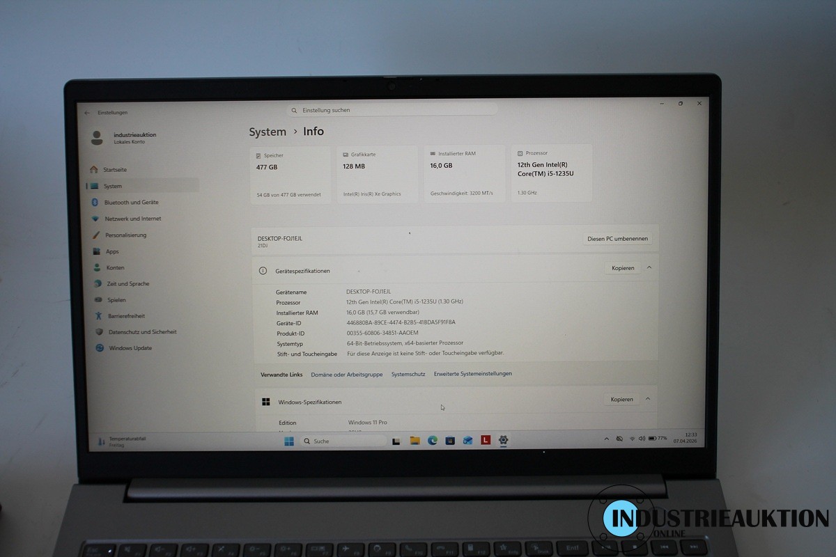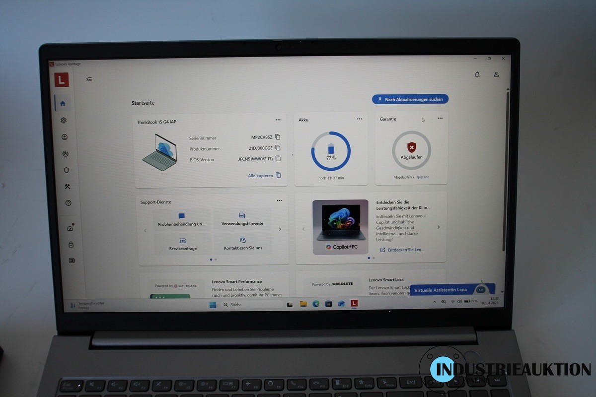 Laptop LENOVO ThinkBook 15 G4 IAP, 15.5" Display, i5-1235U 12. Gen., 1.3 GHz, 16 GB RAM, 500 GB SSD, Win 11 Pro, Herstellung 11/22, Kapazität Akku 92 %, USB-C Dockingstation, Netzteil