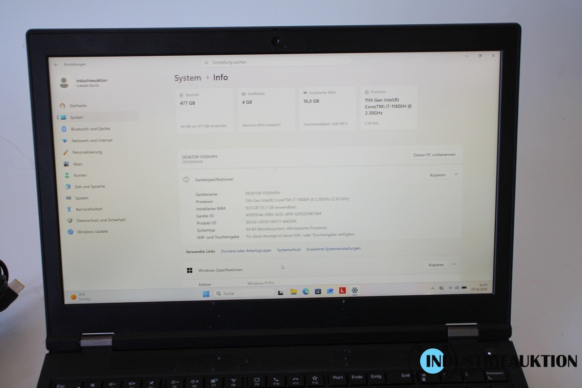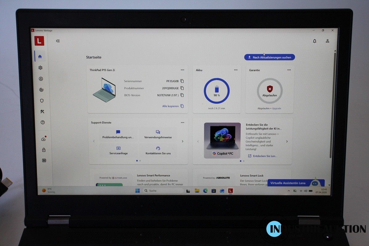 Laptop LENOVO ThinkPad P15 Gen 2i , 15.5" Display, i7-11800H 11. Gen., 2.3 GHz, 16 GB RAM, 500 GB SSD, Win 11 Pro, Herstellung 05/22, Kapazität Akku 85 %, 4 GB Grafik, Netzteil