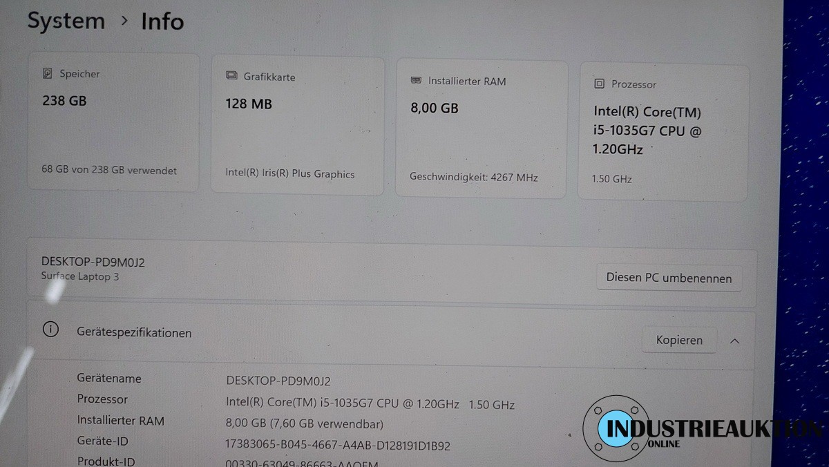 Microsoft Surface Laptop 3, Modell 1867, Intel I5-1035G7 1,20GHz, 8GB RAM, 250GB SSD, WIN 11Pro