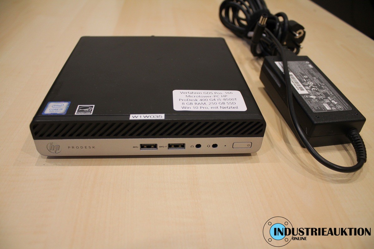 Mini-PC HP ProDesk 400 G4, i5-8500T, 8 GB RAM, 250 GB SSD, Win 10 Pro, mit Netzteil