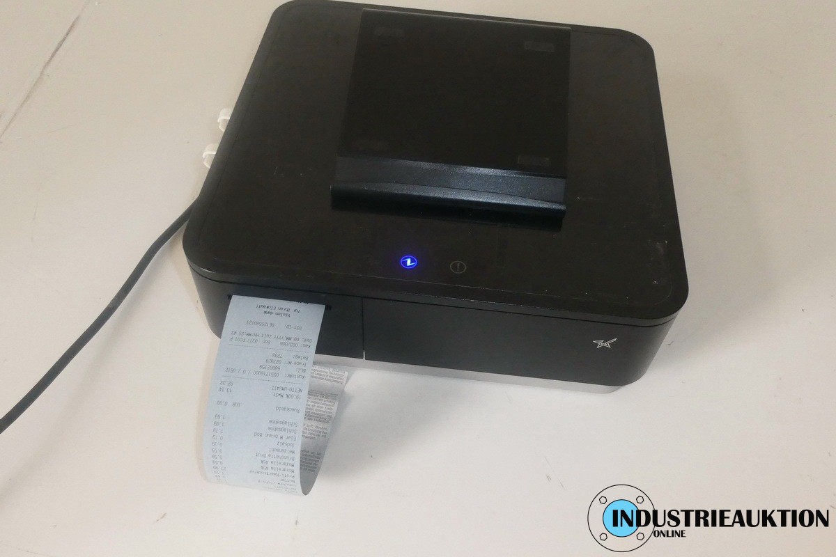 POS-Drucker- / Kassenladen-Kombination, Tragbar, ca. 30x30x10 cm, USB-C und Bluetooth, für mPOS- und mobile Zahlungsanwendungen. Verbindung mit Apple®-, Android- und Windows-Tablets oder Smartphones, Thermo-Belegdrucker mit „Drop-in-and-Print“-Papierlade- und Print-Flat-Technologie, Kassenschublade für Banknoten und Münzen.