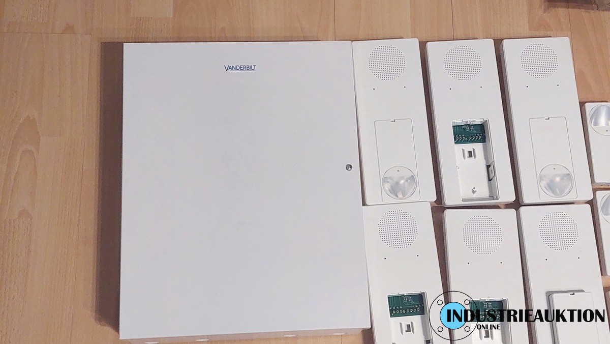 Alarmsystem Vanderbilt, SIN 7110167078, best. aus Alarmzentrale SPC 5000, LCD-Smart Bedienteil, 6 Audioverikationsmodule, 6 Passiv-Infrarotmelder 12m Weitwinkel, 1 Funk-Fernbedienung