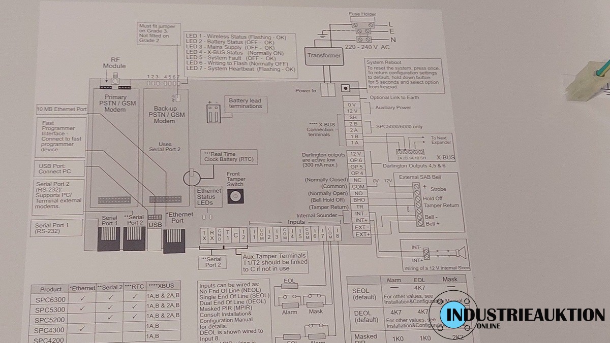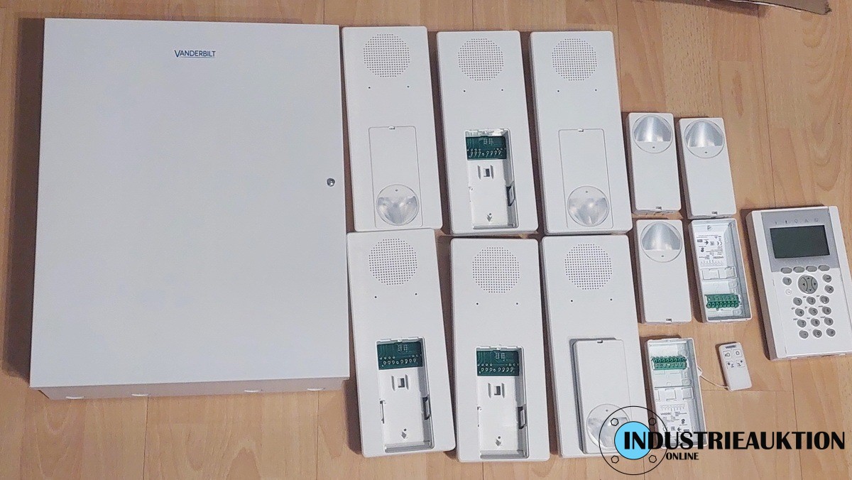 Alarmsystem Vanderbilt, SIN 7110167078, best. aus Alarmzentrale SPC 5000, LCD-Smart Bedienteil, 6 Audioverikationsmodule, 6 Passiv-Infrarotmelder 12m Weitwinkel, 1 Funk-Fernbedienung