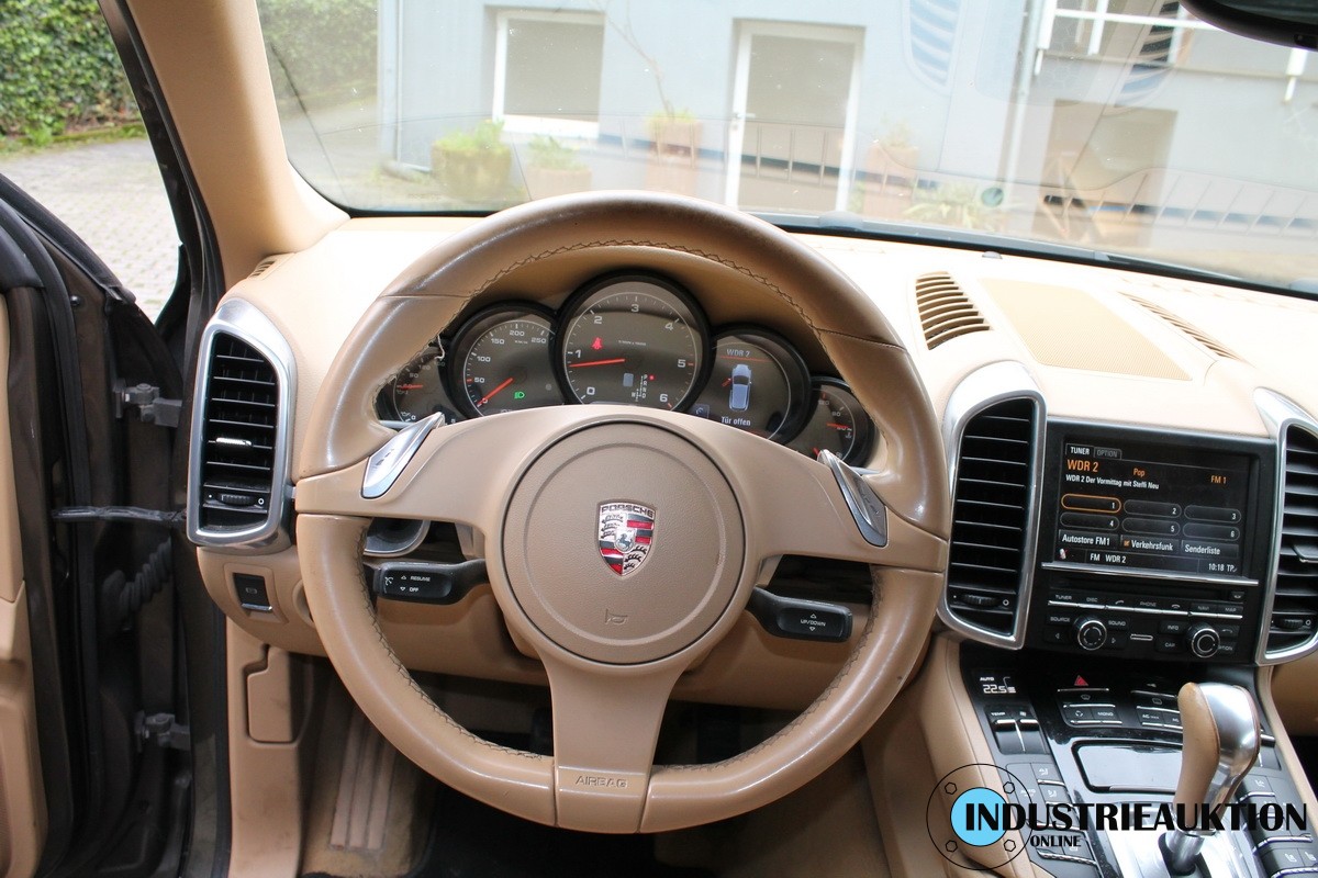 Geländefz. PORSCHE Cayenne 3.0 Diesel, FG-Nr.WP1ZZZ92ZBLA25164, EZ 09/10, abgel. Km-Stand 183.605, Diesel, EURO5, HU 09/24, 2.967 cm³, 176 kW, Braun, 8-Gang Automatik, Luftfederung elektr. geregelt, PASM Porsche Active Suspension Management, Navi, Bluetooth, Ledersitze, Sitzbelüftung, PDC, elektr. Heckklappe, Tempomat, AHK, Alarm, 2 Schlüssel,