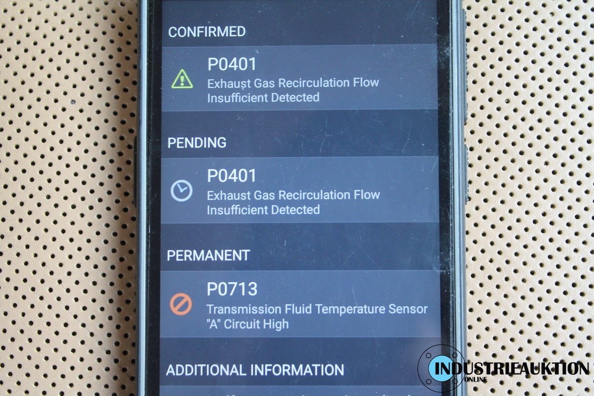 Fehlermeldungen: P0401 Abgas-Rückführung Flußrate zu niedrig, P0713 Getriebeöl-Temp.Sensor, ZV-Fehler hintere Türen: links nicht von Außen zu öffnen, rechts schließt nicht ab. Unfall-KFZ, Motorhaube, Kotflügel und beide Türen rechts nachlackiert, Spaltmaße zum Kotflügel schlecht, in der Beifahrertür ist etwas lose. Karosserie mit kleinen Beulen, Lackschäden, Kratzern. Gebrauchsspuren, der Laufleistung entsprechend. Fahrzeug fährt ohne Probleme, Federung und Dämpfung OK