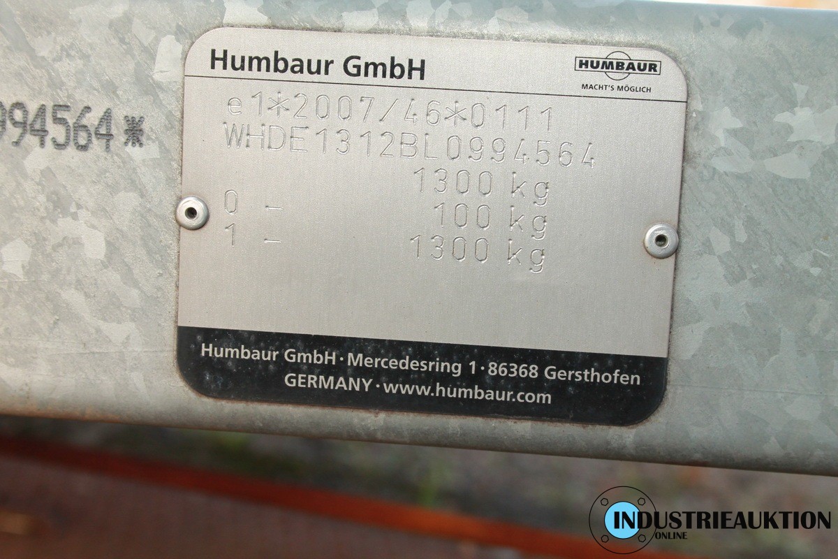Anhänger HUMBAUR HK 132513-15P, Koffer, FIN WHDE1312BL0 994564, EZ 07/22, zul. GG 1.300kg, HU 12/26, HSN/TSN 7721/ACV