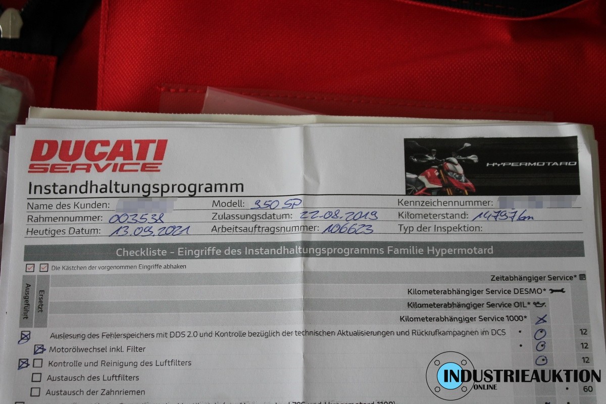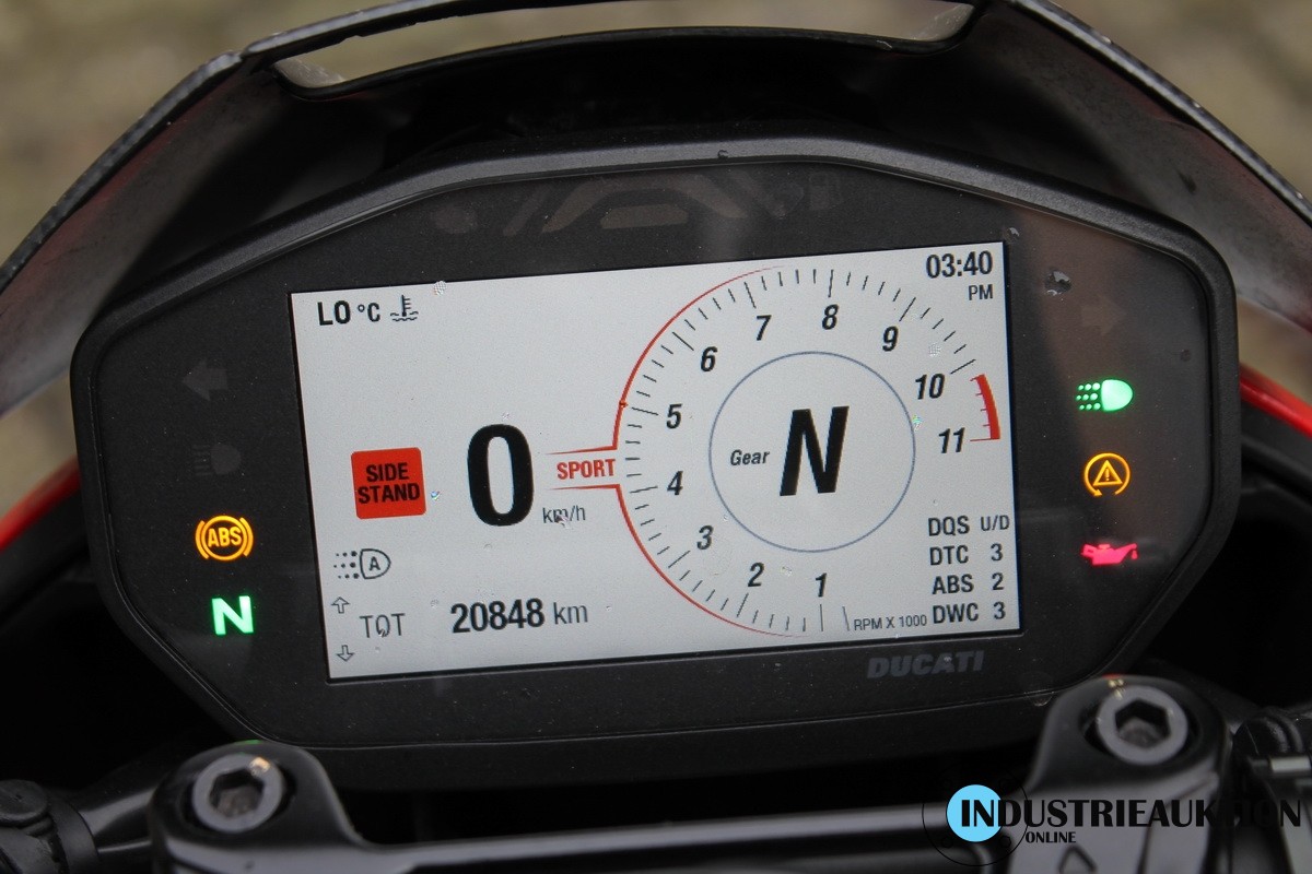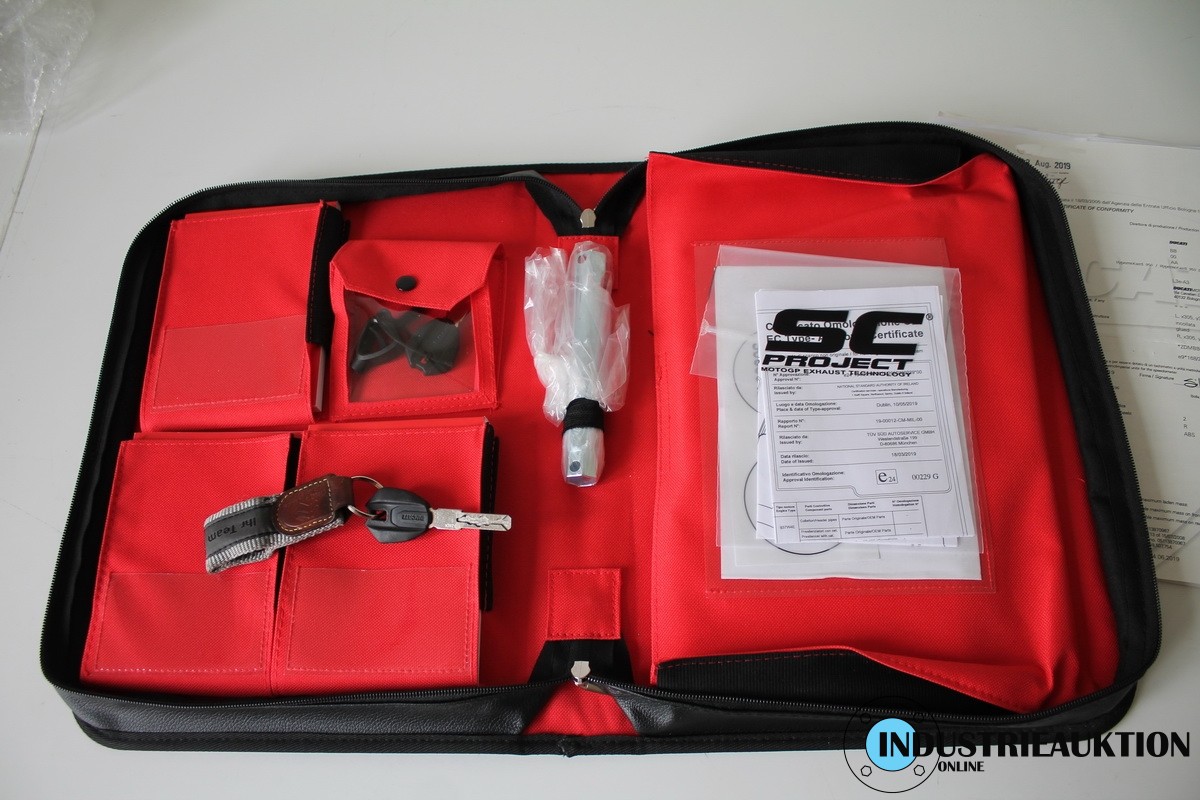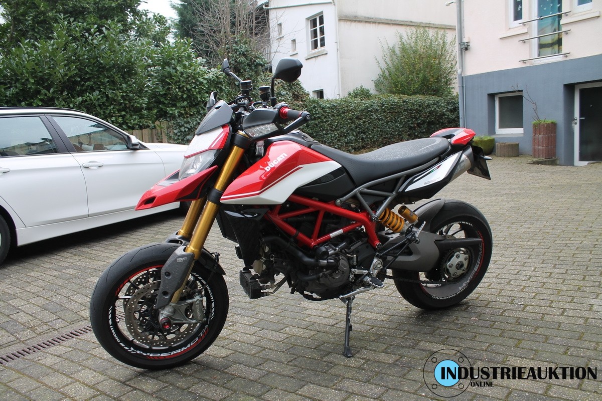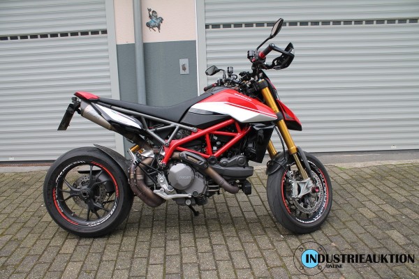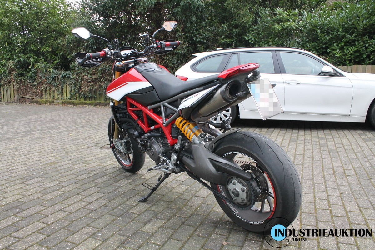 Krad DUCATI Hypermotard 950 SP, FG-Nr. ZDMBB00AALB003538, EZ 08/19, LG 205 kg, abgel. Km-Stand 20.848, EURO4, HU 09/23, 937 cm³, 84 kW, Öhlins-Fahrwerk, Schmiedefelgen, versch. Fahrmodi, Traction-Control, Kurven-ABS, Wheelie-Control, Quickshifter, Auspuff SC-Project, zahlreiche Carbonteile, div. Anbauteile von RIZOMA, u.a. Tankdeckel, Hebel, Flüssigkeitsbehälter, Öhlins Lenkungsdämpfer, Halter für Smartphone, Bluetooth Rückfahrkamera, für ca. 4.000€ Zubehör verbaut, letzter Service 09/21 bei km 14.797, original Bordmappe vorhanden - ZBII bei der Bank
