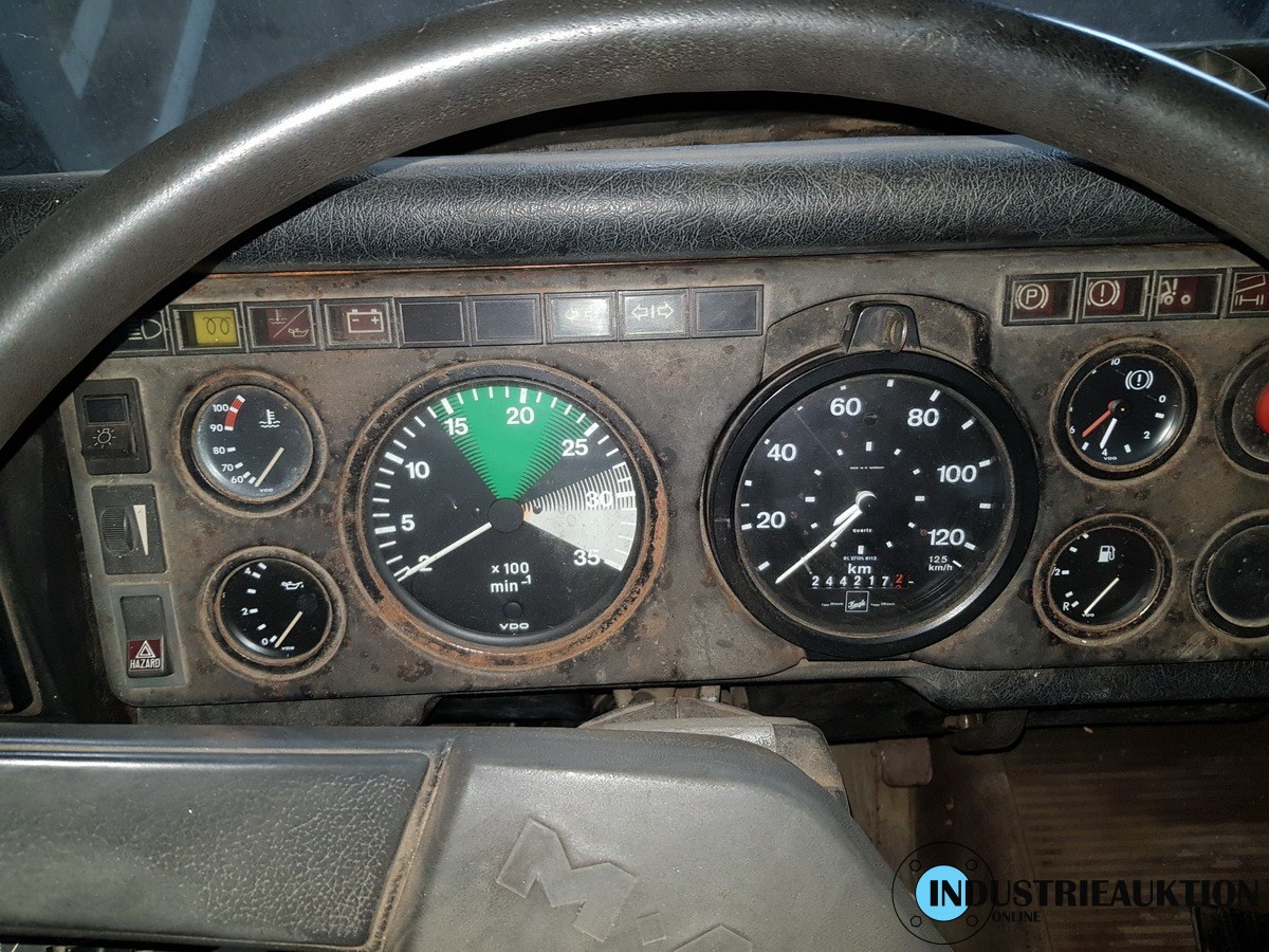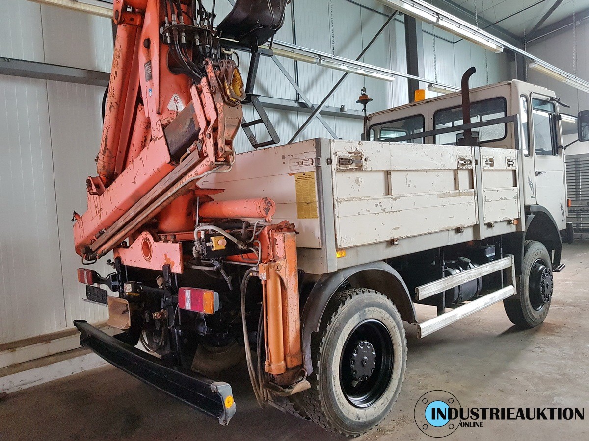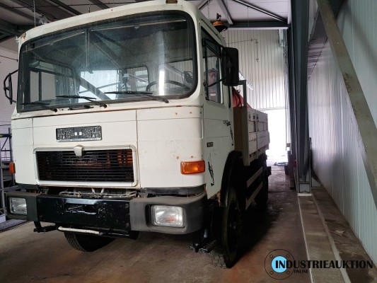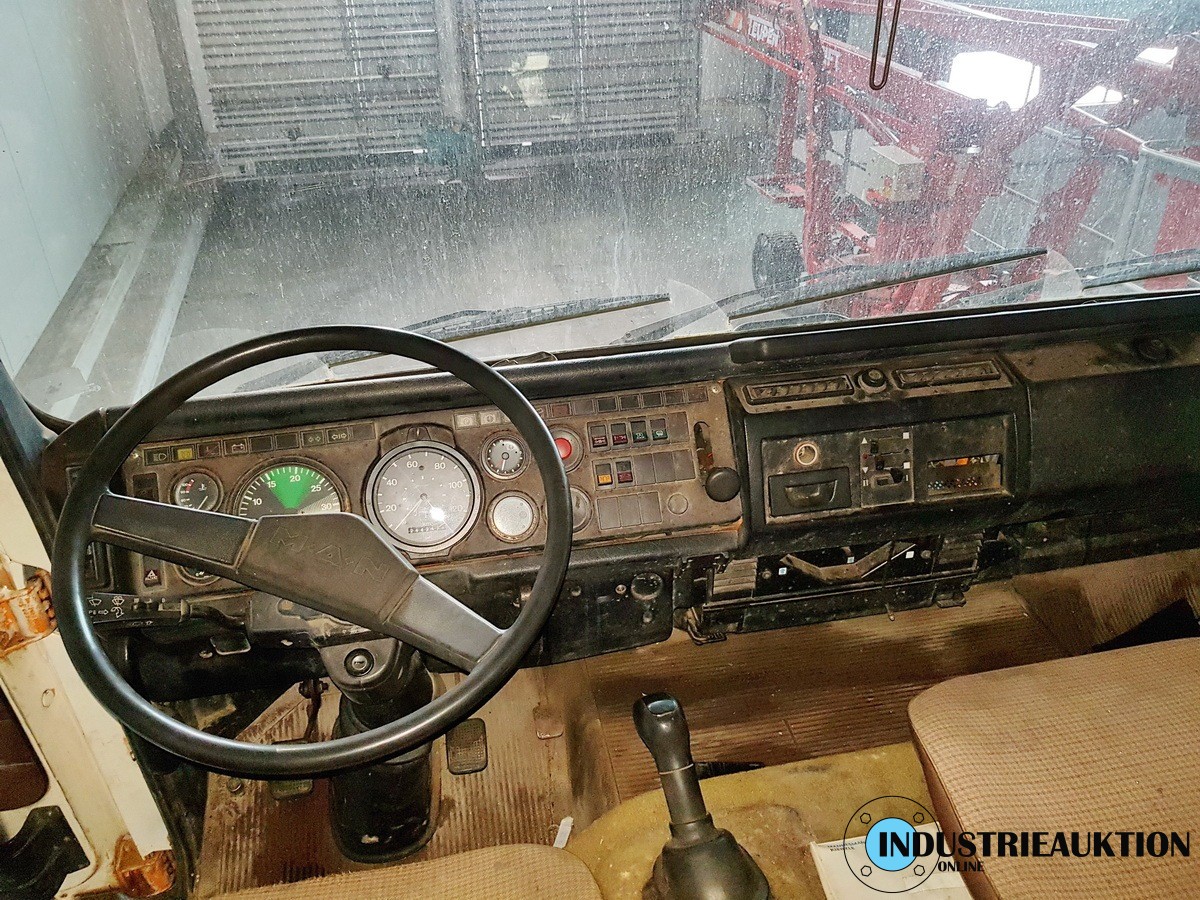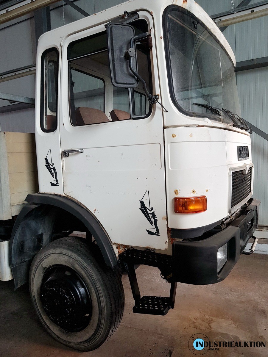 LKW MAN 14.170 FAK, FG-Nr. WMA4960067M052606, EZ 07/86, zul. GG 7490kg, abgel km-Stand 244.217, 125kW, Allrad, Ladekran ATLAS AK 100.1, Bj. 92, 3 hydr2 mech. Auszüge, Hubkraft bei 1,9m 5to, bei 5m 1,7to, bei Vollauszug 0,58to. Anhängelast 28000kg bei Anhänger mit Bremse.