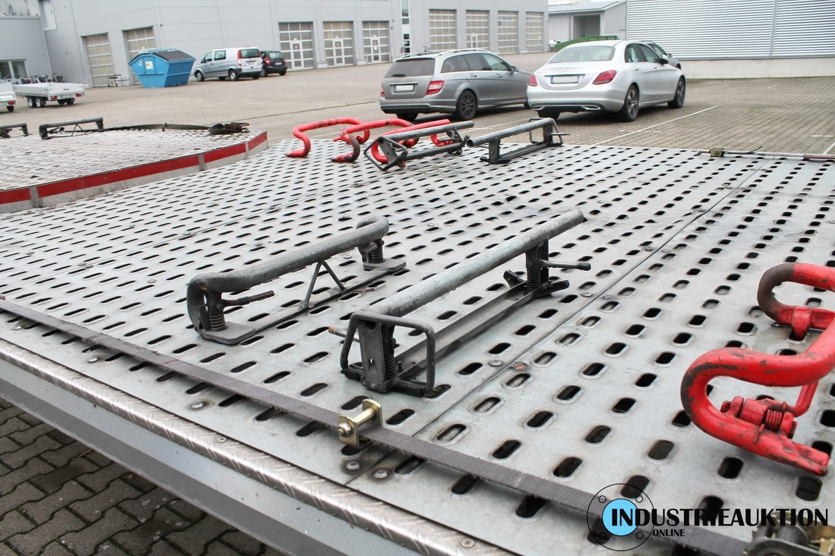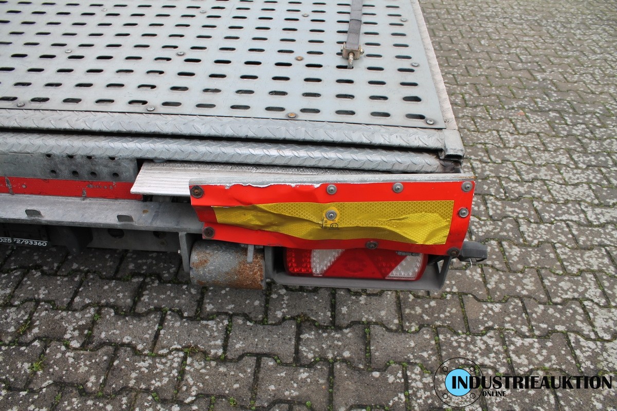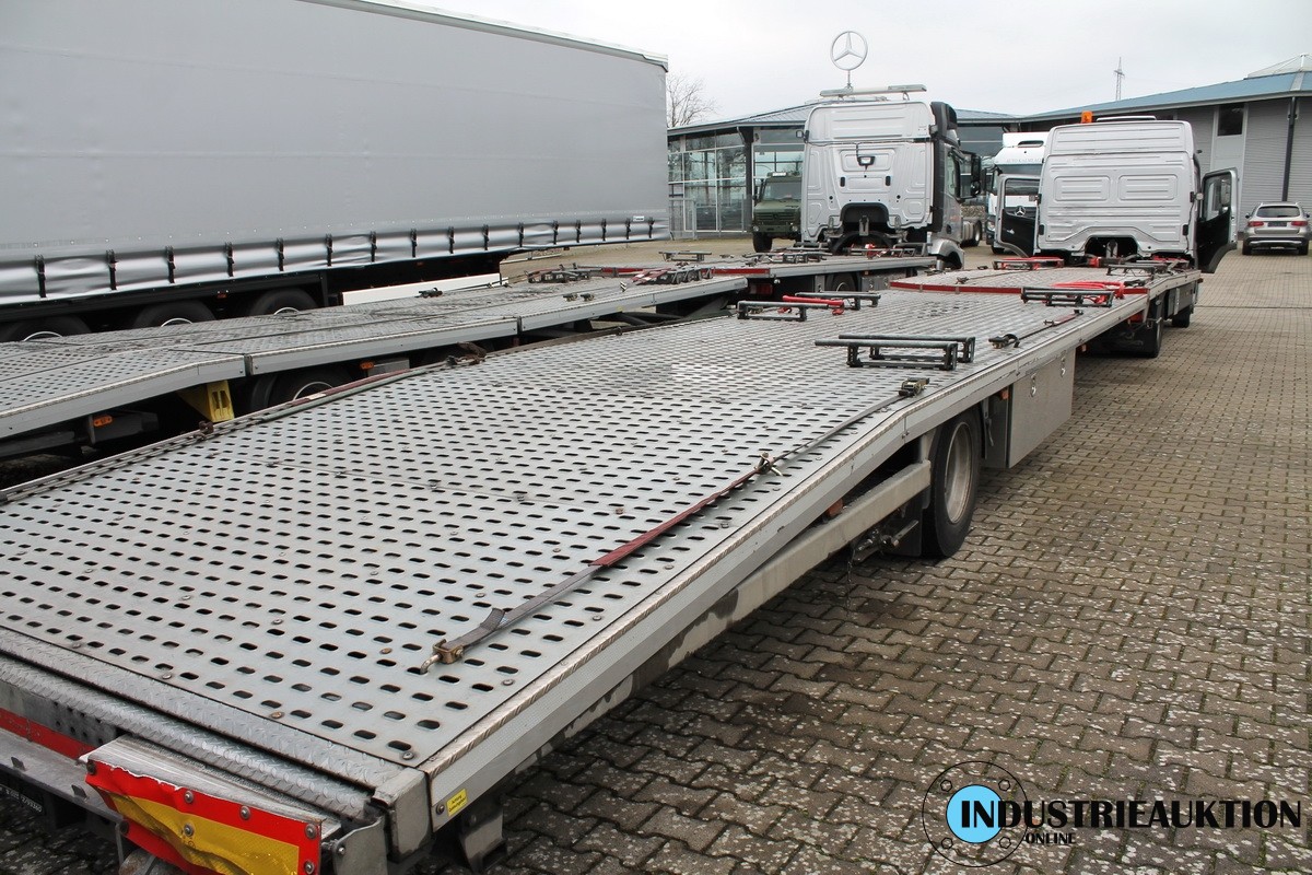 mit LKW-Anhänger MERSCH, Fahrzeugtransporter, FG-Nr. W090F0110JEM0742, EZ 05/18, zul. GG 10.000 kg, ausziehbare Auffahrrampen, ausziehbares Heck um 1,20 m, hinten rechts beschädigt - ZBII bei der Bank