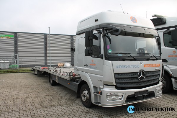 LKW MERCEDES-BENZ ATEGO 924L Bluetec 6, Fahrzeugtransporter, FG-NR. WDB96702310225147, EZ 05/18, zul. GG 7.499 kg, abgelastet von 9.500 kg, Laufleistung geschätzt 640.000, EURO6, HU 06/23, 7.698 cm³, 175 kW, Klimaanlage, Multifunktionslenkrad, Tempomat, Automatik, Standklimaanlage, Schlafkabine, Funk, Standheizung, Kühlbox, Abstand- und Spurhalteass., Fahrzeugaufbau MERSCH Dorylus XL, mit Seilwinde VIME EPH 3600 FN, Länge der Plattform ca. 6 m, Rückwand Fahrerhaus mit einigen Beulen