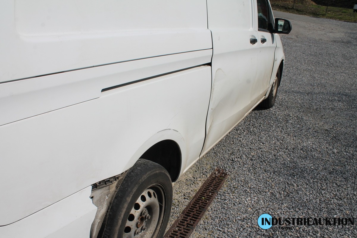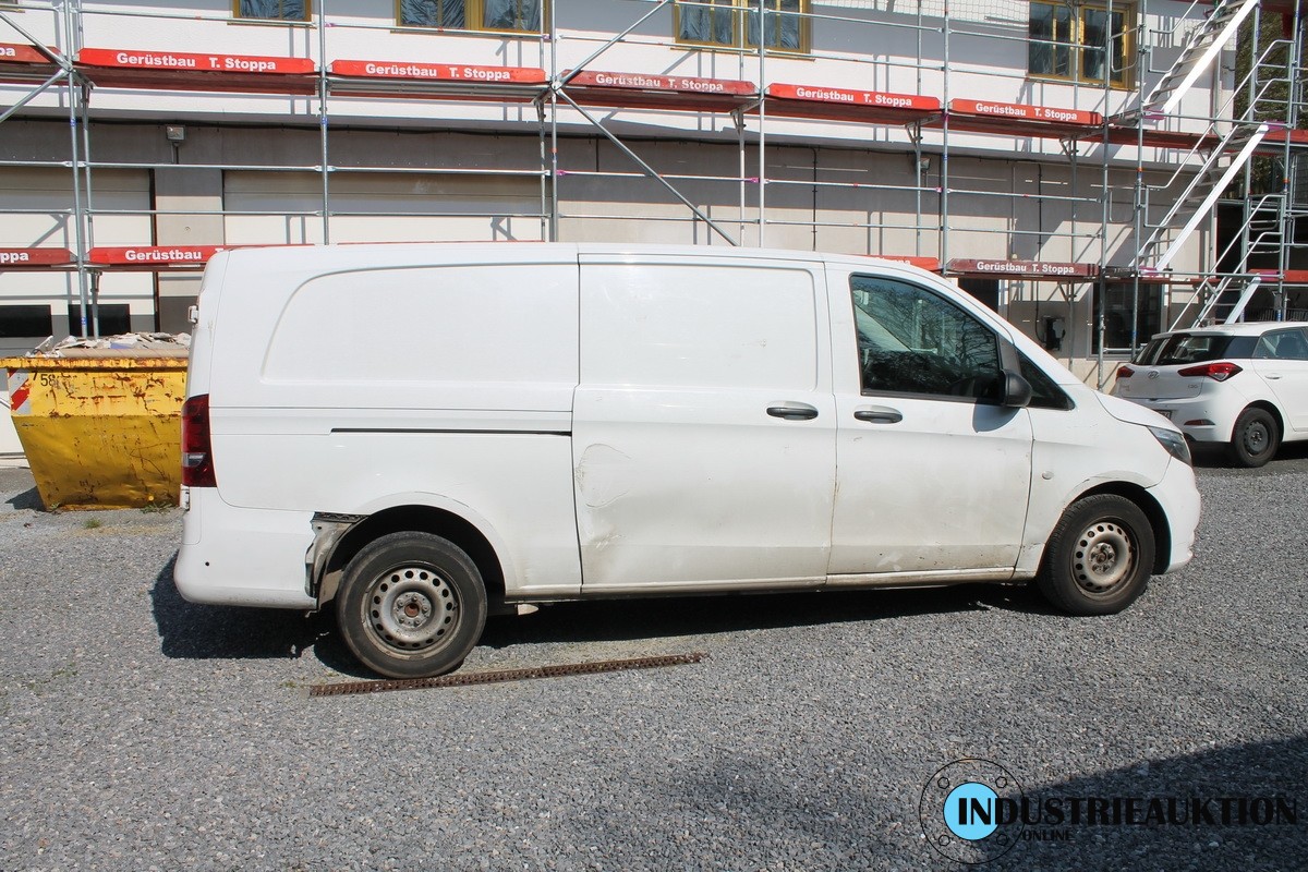 Mercedes-Benz Vito 111CDI, geschl. Kasten lang, FG-Nr. WDF44760513678282, EZ 10/20, zul. GG 2.700 kg, abgel. Km-Stand 125.956, HU 01/25, Diesel, EURO6, 1.750 cm³, 75 kW, MF-Lenkrad, Navi, Rückfahrkamera, Fehlermeldungen, Karosserie mit div. Beschädigungen rundum, Reifen schlecht, siehe Bilder
