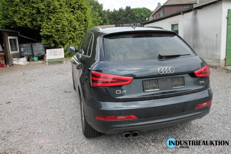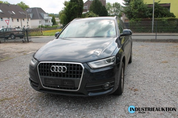 PKW Audi Q3 Kombilimousine, FIN WAUZZZ8U2DR 002081, EZ 07/12, HU 09/25, abgel. km-Stand 74.829, Diesel, grüne Plakette, 1.968 cm³, 103 kW, Farbe blau, 6-Gang-Schaltung, el. Fensterheber vorne u. hinten, Klima, Sitzheizung, Schramme hinten li., Rolo f. Heckscheibe, HSN/TSN 0588/ASN