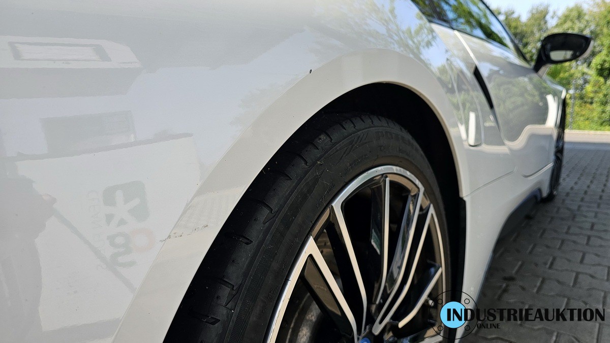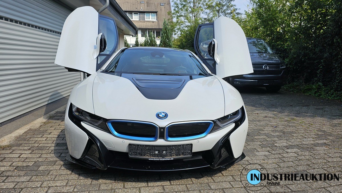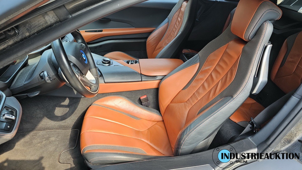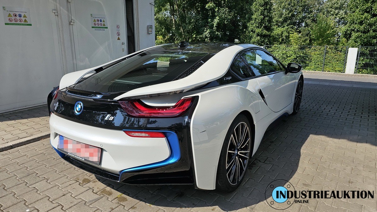 PKW BMW i8 Coupe; Hybrid, FG-Nr. WBY2Z410607 D39522, EZ 02/19, abgel. km-Stand 44.524, EURO6, Hybrid B/E, ext. Aufl., 1.499 cm³, 170 kW, 105 kW Elektromotor, HU 03/24, Automatik, Leder, Navi, Bluetooth, Headup, Laserlicht, Harman-Kardon, Service/HU fällig, Hinterreifen abgefahren, Karosserie/Lackschäden, Schl.-Nr. 0005/BUA, Abholung mit Trailer empfohlen - ZBII bei der Bank