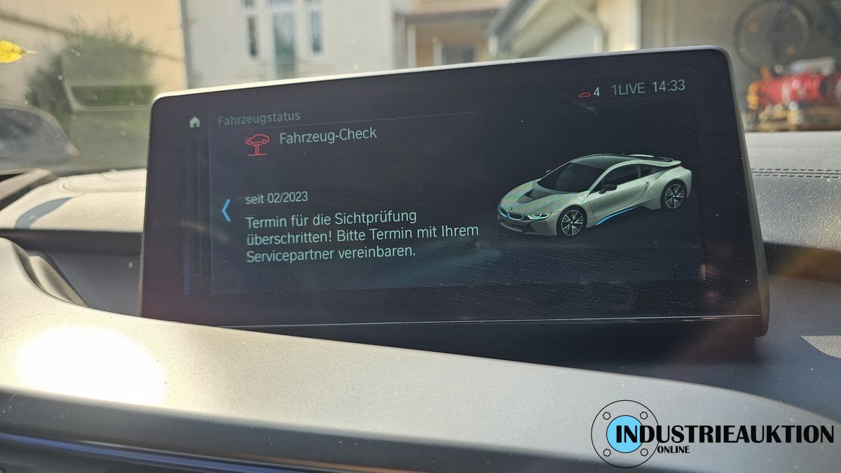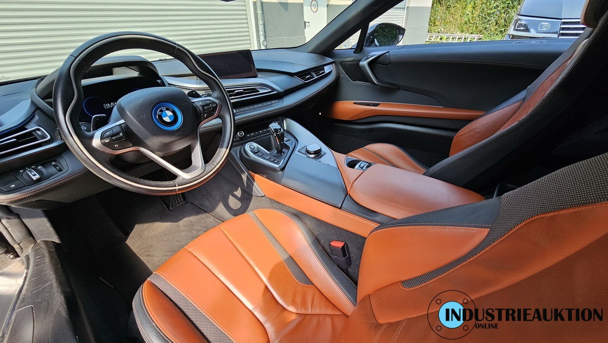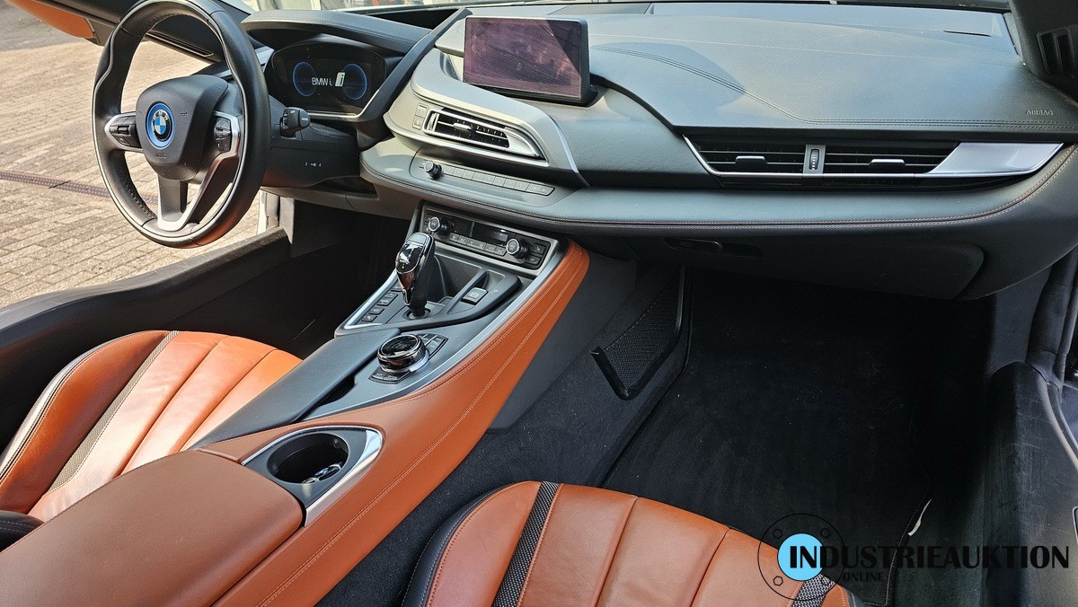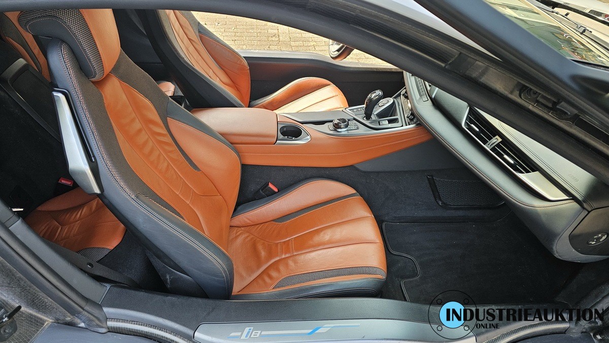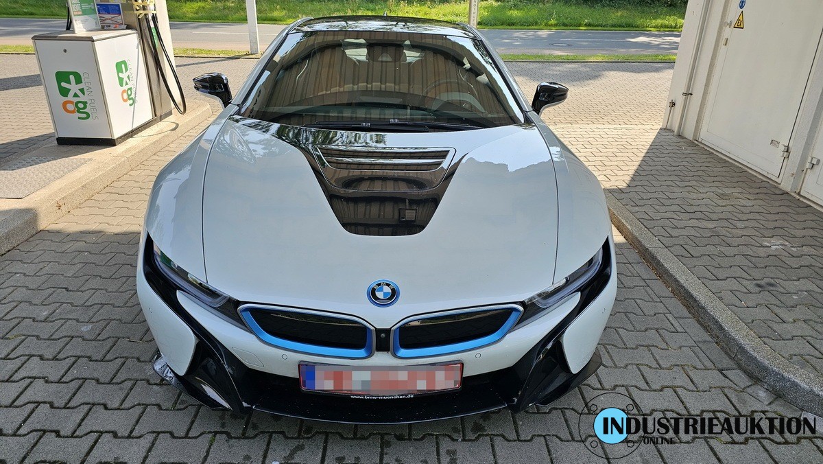 PKW BMW i8 Coupe; Hybrid, FG-Nr. WBY2Z410607 D39522, EZ 02/19, abgel. km-Stand 44.524, EURO6, Hybrid B/E, ext. Aufl., 1.499 cm³, 170 kW, 105 kW Elektromotor, HU 03/24, Automatik, Leder, Navi, Bluetooth, Headup, Laserlicht, Harman-Kardon, Service/HU fällig, Hinterreifen abgefahren, Karosserie/Lackschäden, Schl.-Nr. 0005/BUA, Abholung mit Trailer empfohlen - ZBII bei der Bank