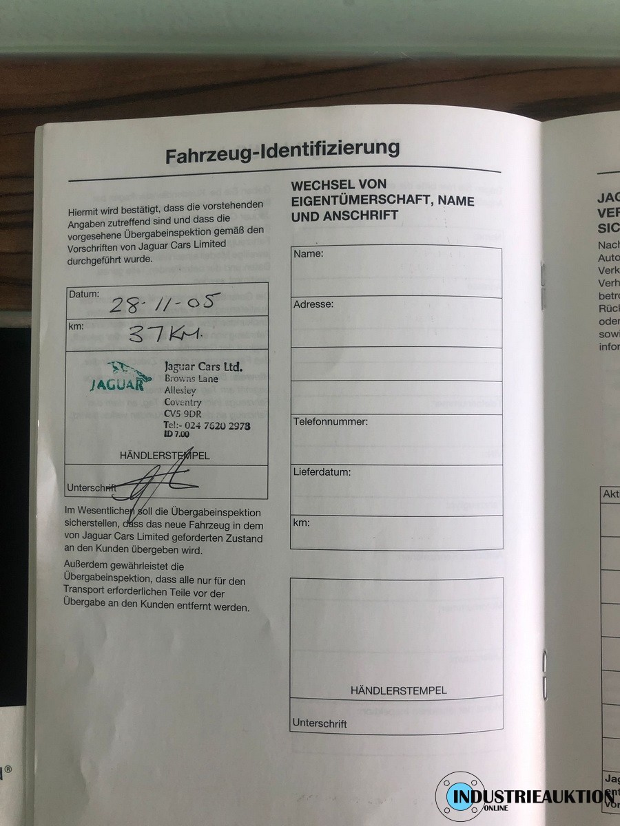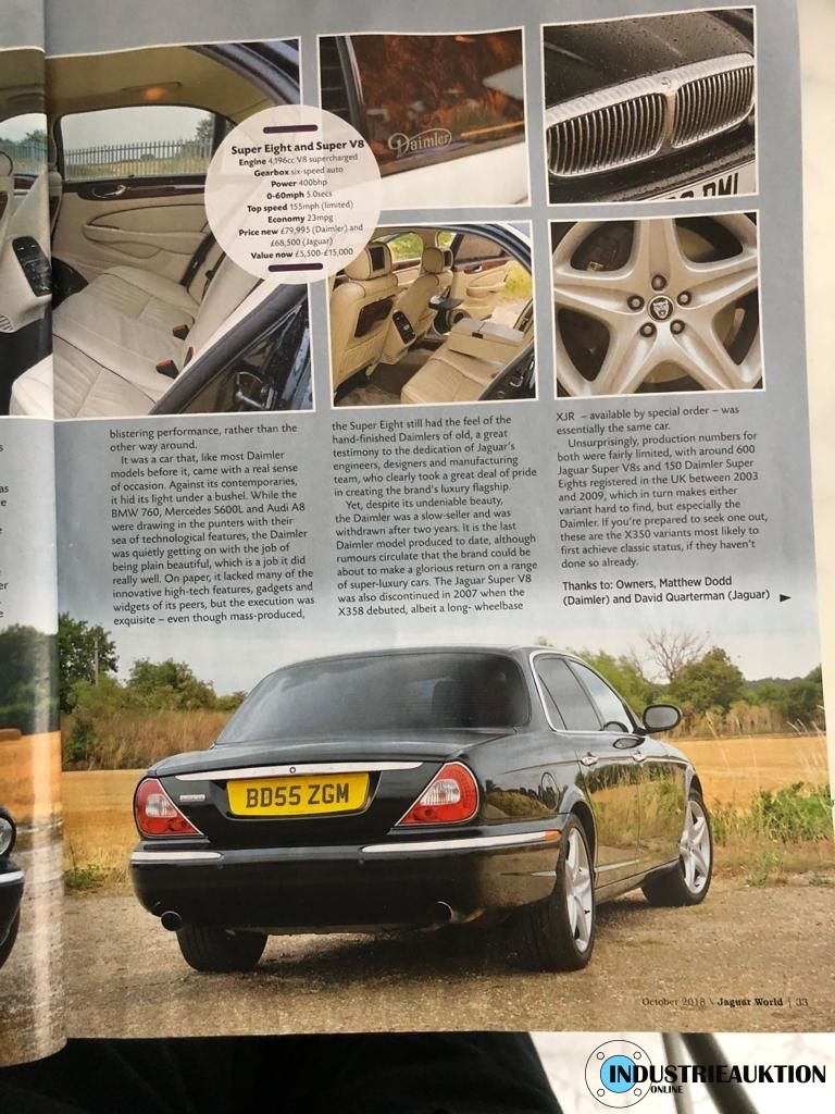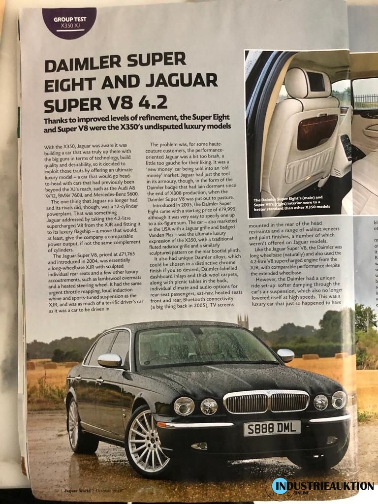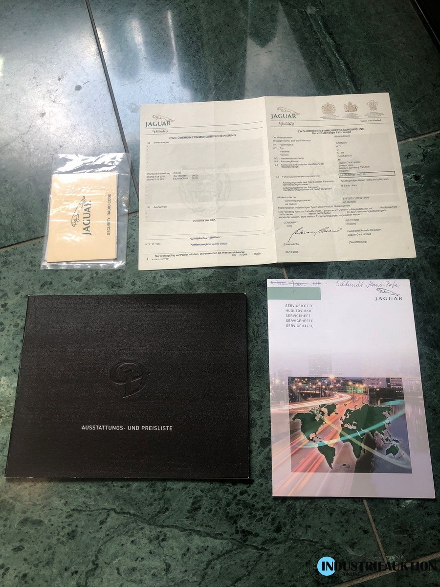 PKW Daimler (Jaguar) Super Eight, FG-Nr. SAJAA82R26TH03798, EZ 12/05, Laufleistung ca. 109.000 km, Hu 07/23, Benzin, EURO4, 4.196 cm³, 291 kW, Rot, Automatik, Leder beige, Klima, 20" Felgen, 2-teilig, Scheckheft, minimale Beulen und Kratzer, seinerzeitiges Topmodell des Konzerns, nur 853 Stück produziert, nähere Info siehe Bilder