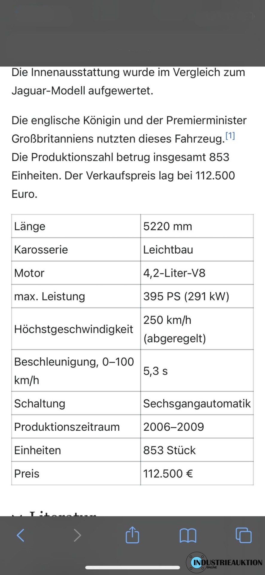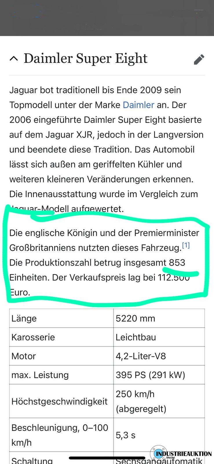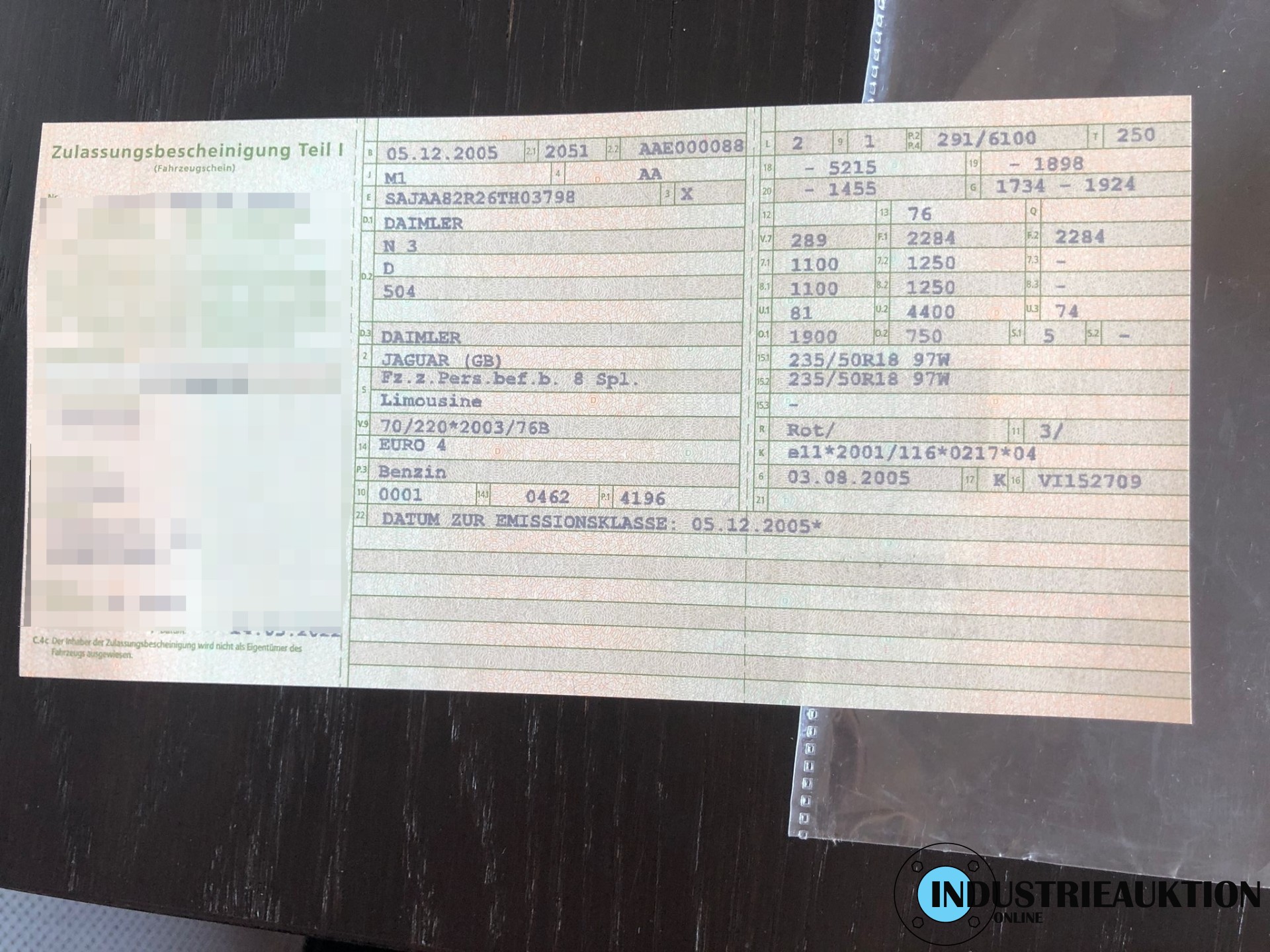 PKW Daimler (Jaguar) Super Eight, FG-Nr. SAJAA82R26TH03798, EZ 12/05, Laufleistung ca. 109.000 km, Hu 07/23, Benzin, EURO4, 4.196 cm³, 291 kW, Rot, Automatik, Leder beige, Klima, 20" Felgen, 2-teilig, Scheckheft, minimale Beulen und Kratzer, seinerzeitiges Topmodell des Konzerns, nur 853 Stück produziert, nähere Info siehe Bilder