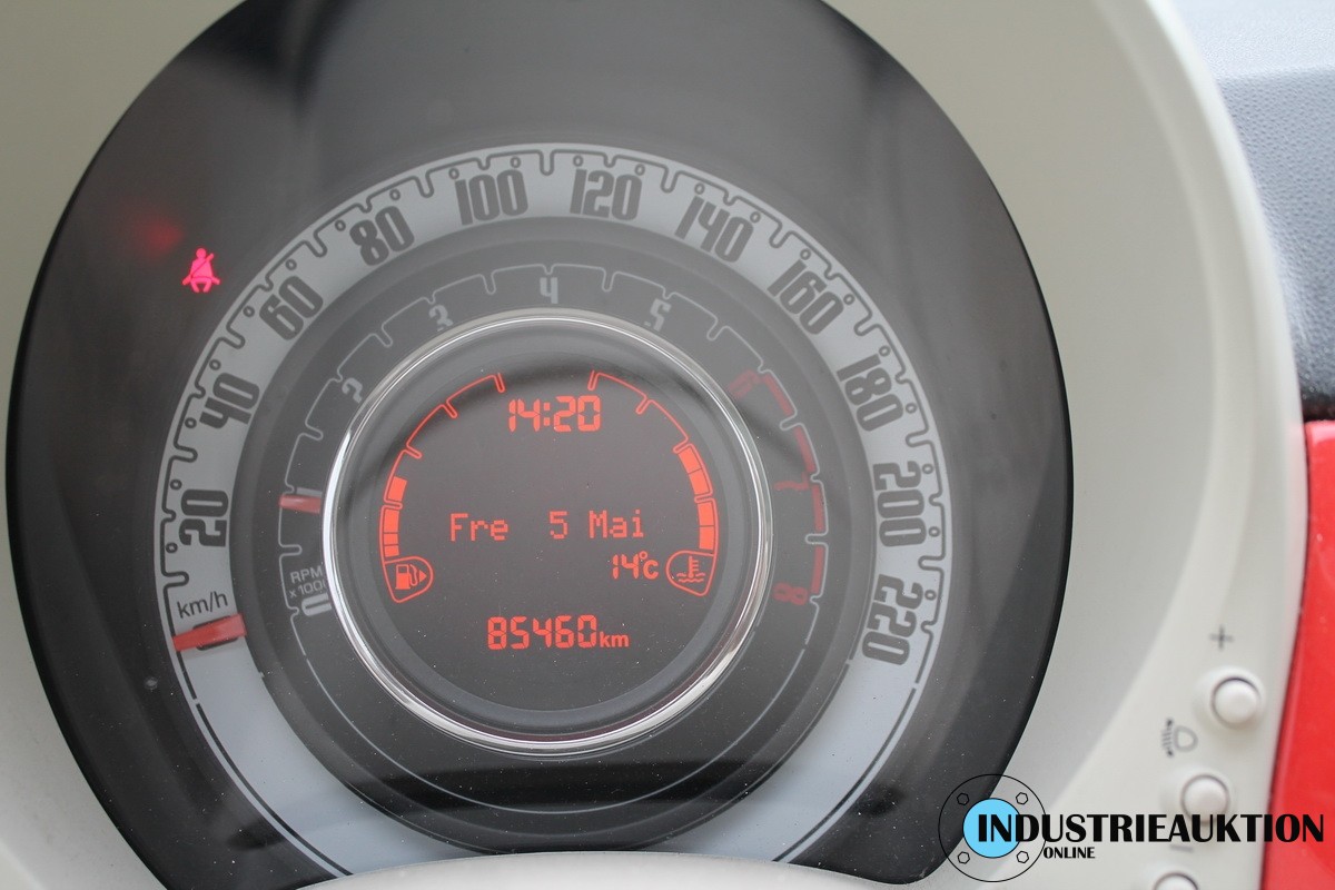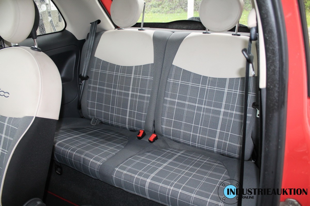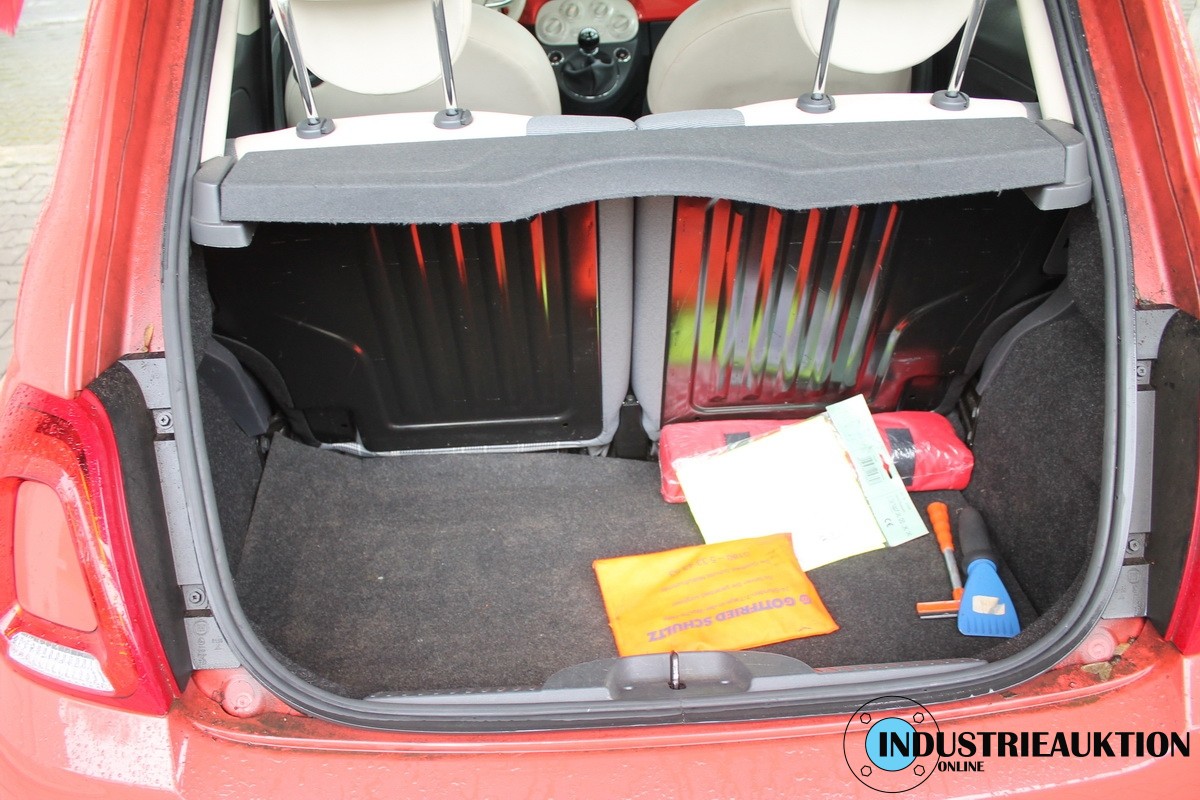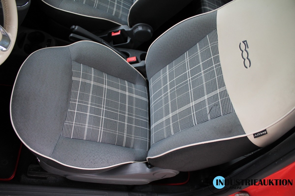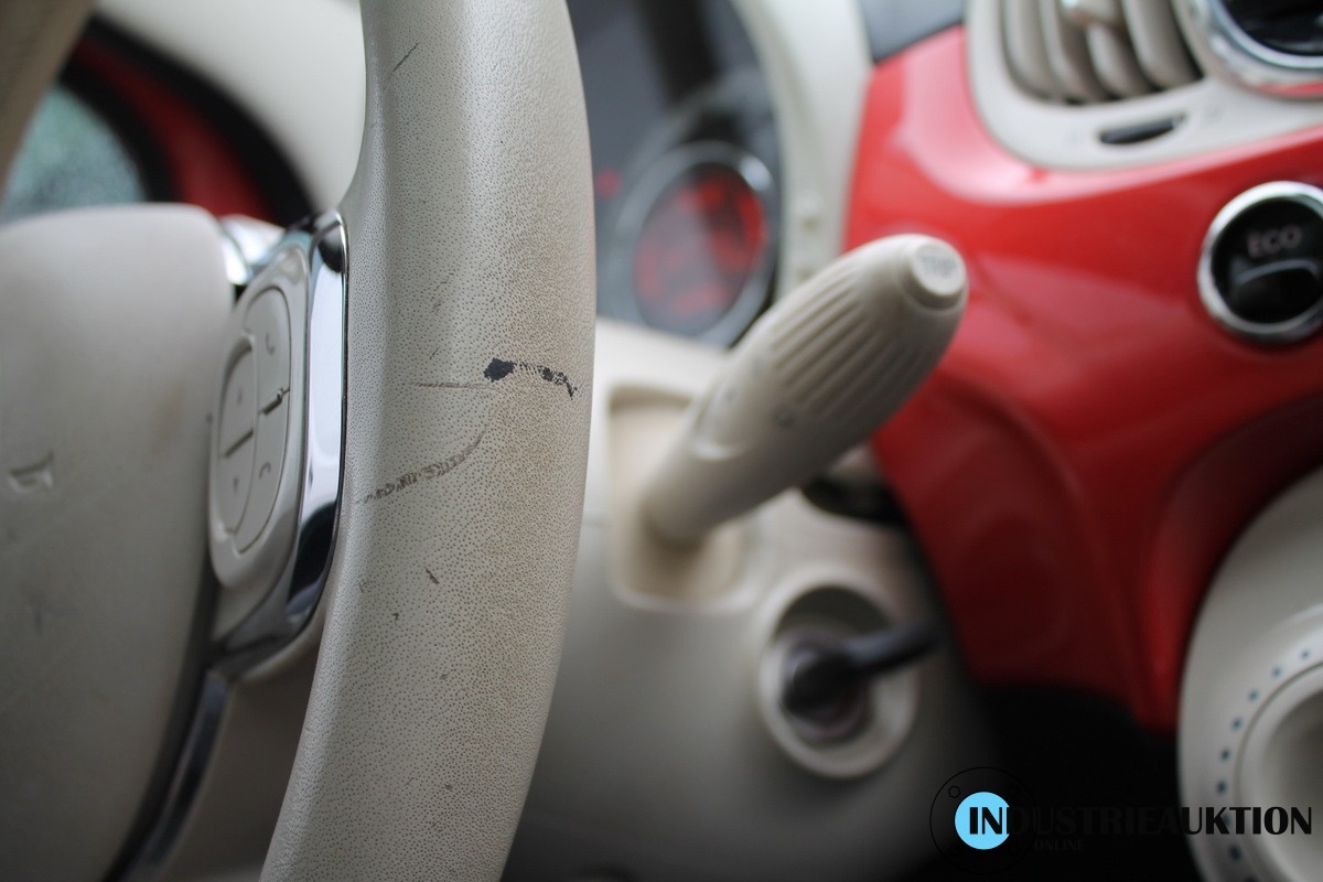 PKW FIAT 500 0.9 Lounge, FG-Nr. ZFA3120000J567744, EZ 04/16, abgel. Km-Stand 85.460, Benzin, EURO6, HU 05/25, 875 cm³, 63 kW, Rot, 5-Gang, Klima, MF-Lenkrad, Bluetooth, DAB-Radio, Sitzhz., Panoramadach, Fahrzeug mit div. Kratzern und Gebrauchsspuren, Felge mit Bordsteinschäden, siehe Bilder, 1 Schlüssel ohne FB, 1. Hand, Schl.-Nr. 1727/AAO