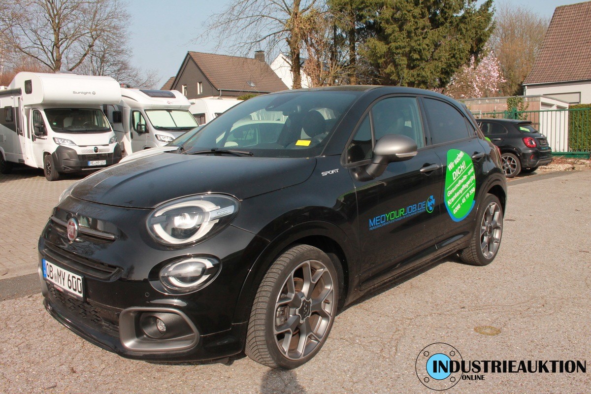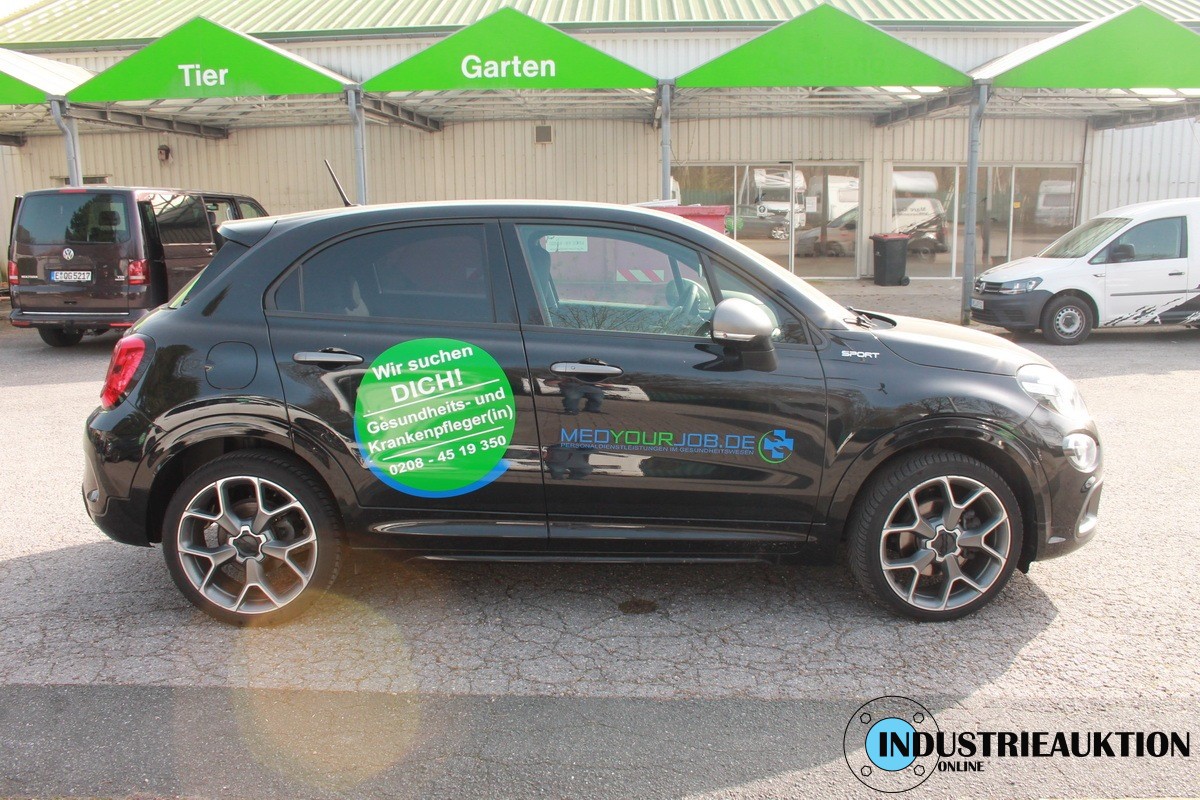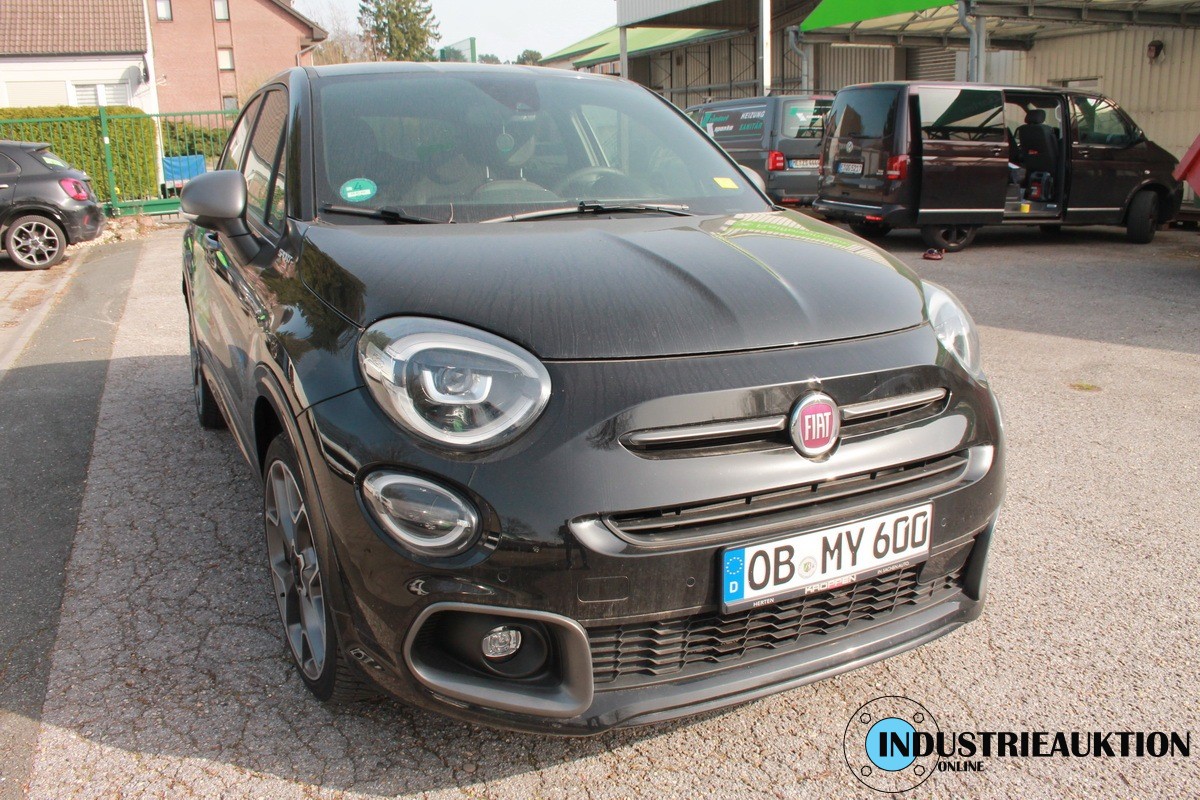 PKW FIAT 500X Sport (334), amtl. Kennz. OB-MY 600, EZ 07/22, FG-Nr. ZFANF2C19MP971152, km-Stand abgel. 57992, Benzin, EURO6, 1332 cm³, 110 kW, Schwarz, Winter-Paket, X-Tech Paket, Automatik, Klima, Sitzhz., Navi, Bluetooth, Tempomat, 19" Räder, Bordsteinschäden - ZBII bei der Bank
