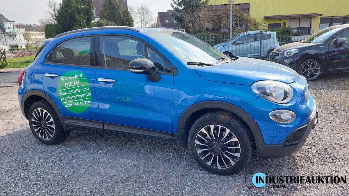 PKW FIAT 500X Cross Hybrid 1.5, amtl. Kennz. OB MY 8000, FIN ZFANF2DA2NPA 03137, EZ 07/23, km-Stand abgel. 51.455, HU 07/26, Hybr.Benzin/E, 1.469 cm³, 96 kW, Blau, 17" Räder, Automatik, Klima, Bluetooth, Tempomat, ZBII bei der Bank