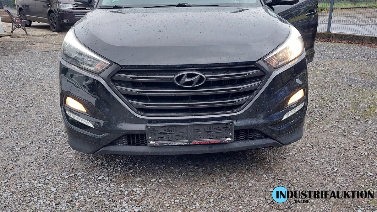 PKW Geländefz. HYUNDAI Tucson 2.0 CRDi 4x4, FG-Nr. TMAJ381ADGJ067839, EZ 12/15, abgel. Km-Stand 187.078, Diesel, EURO6, HU 09/26, 1995cm³, 136kW, Schwarz, Automatik, Klima, Bluetooth, Tempomat, Navi, Sitz u. Lenkradhz., Rückfahrkamera, Erstauslieferung Finland, letzter Service bei 176.989 mit Geriebeölspülung, Motorhaube erneuert/lackiert, Schaden Stoßfänger hinten, Abblendlicht rechts ohne Funktion, hinten rechts Geräusch Radaufhängung