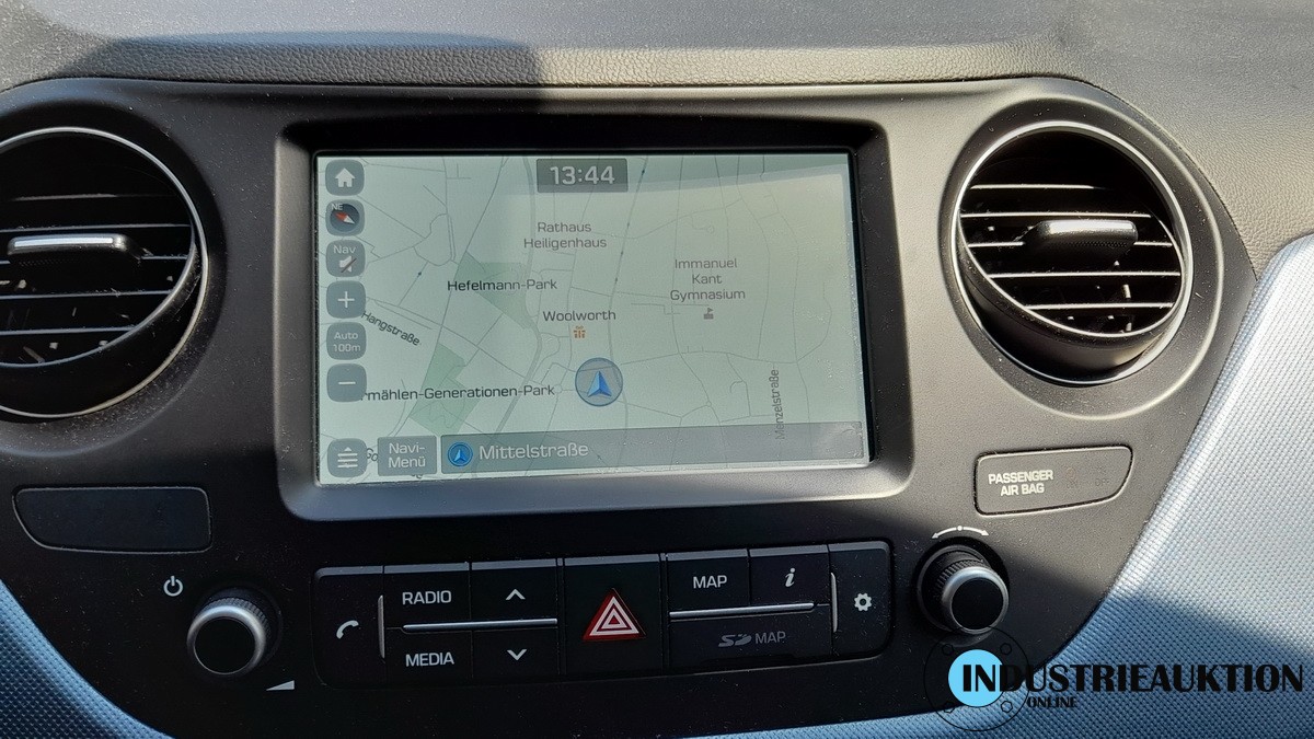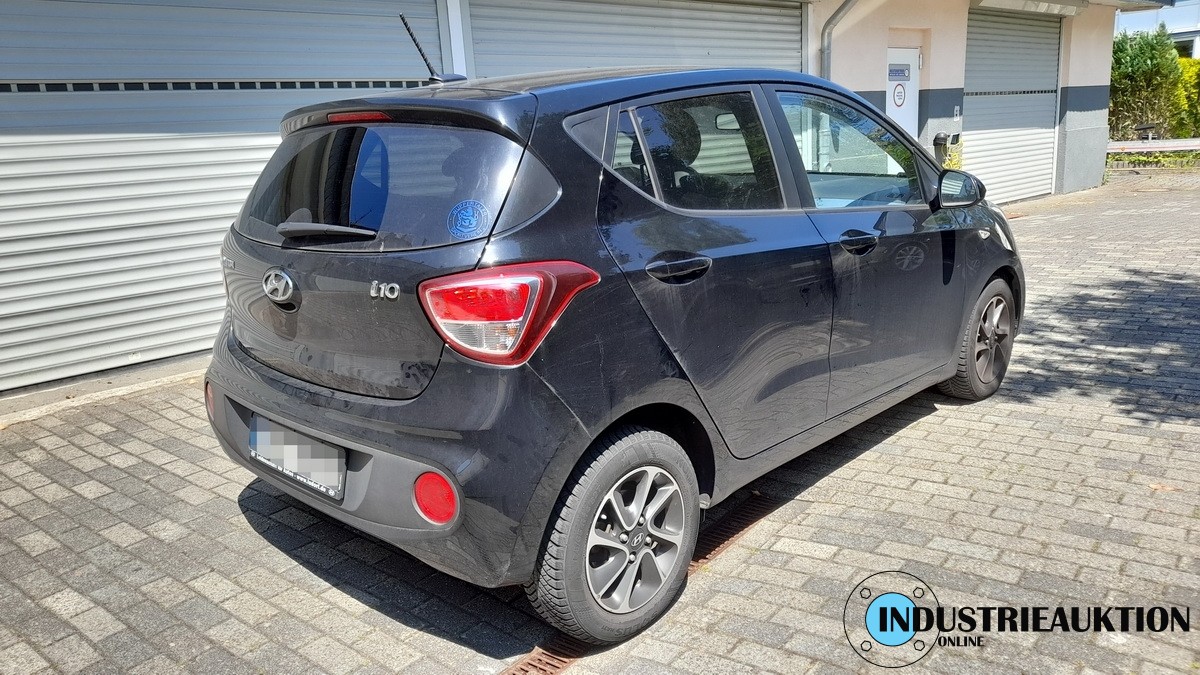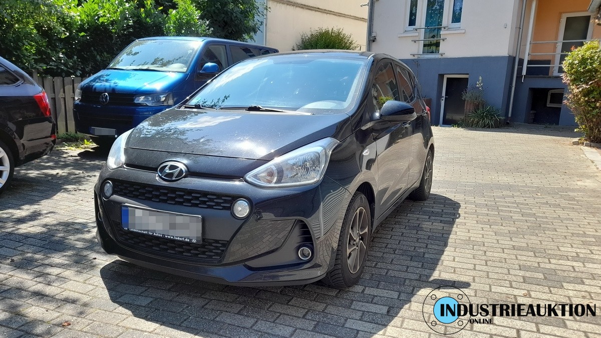 PKW Hyundai i10, FG-Nr. NLHA851CAHZ320511, EZ 01/18, abgel. Km-Stand 51.234, Benzin, EURO6, HU 01/23, 1.248 cm³, 84 kW, schwarz, Klima, Navi, Bluetooth, Tempomat, Sitz- und Lenkradhz., Winterbereift, Hagelschaden auf dem Dach, Beule auf der Motorhaube, Service fällig, Schl-Nr. 5984/AAU