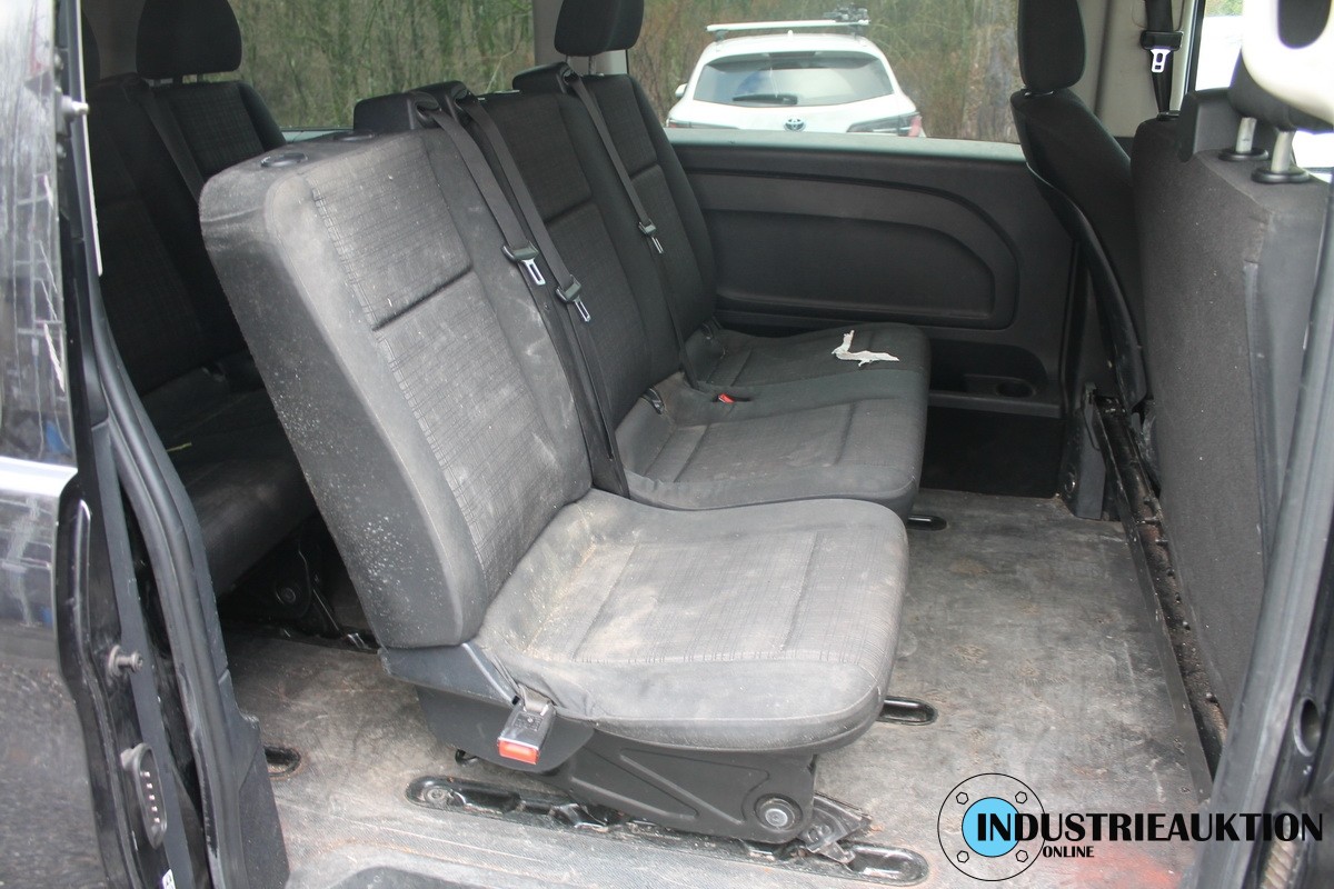 PKW MERCEDES-BENZ Vito 160 Tourer, FG-Nr. WDF44770313310243, EZ 05/17, abgel. km-Stand 306.430, zul. GG 3.100 kg, Diesel, EURO6, HU 09/24, 2.143 cm³, 120 kW, Schwarz, Automatik mit Schaltwippen, MF-Lenkkrad, Tempomat, Bluetooth, Klima, 9 Sitze, Innenraum stark reinigungsbedürftig, div. Beschädigungen, 3 Kopfstützen fehlen, rechte Seite Unfallbeschädigt, div. Kratzer überall, Motorhaube verbeult, hinten links beschädigt, Unfallfahrzeug, die Dachhaut wurde bereits erneuert - ZBII bei der Bank