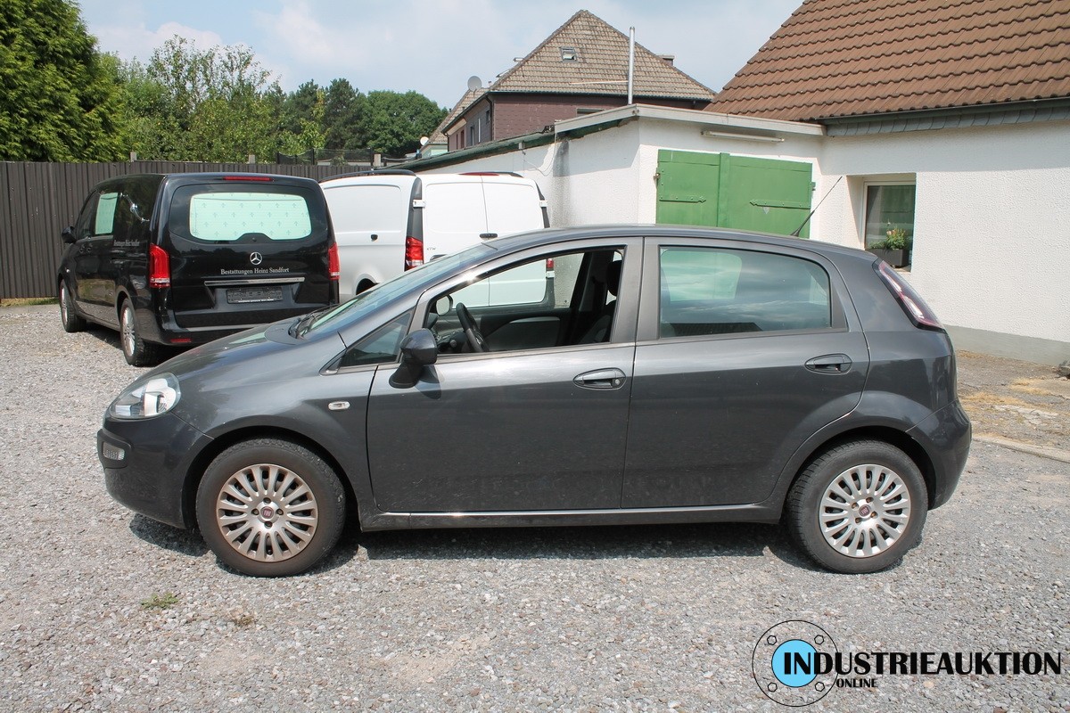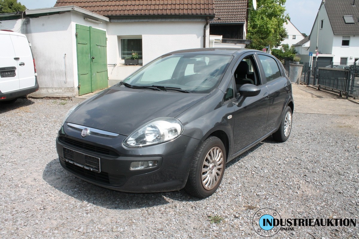 PKW FIAT Punto Evo 1.4, FG-Nr. ZFA1990001781200, EZ 06/11, abgel- km-Stand 76.680, Benzin, EURO5, HU 11/23, 1.368 cm³, 77 kW, grau, 6-Gang Schalter, Klimaautomatik, MF-Lenkrad, Winterbereift, vorne erneuerungsbed., Spuren eines reparierten Schadens, Tür hinten rechts