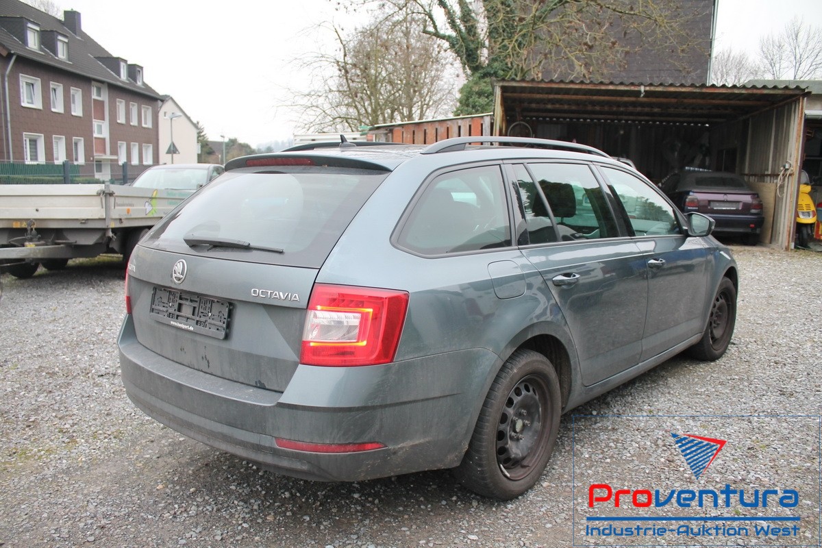 PKW SKODA Octavia 1.6 TDI, FG-Nr. TMBJG/NE5J0074254, EZ 07/17, abgel. Km-Stand 132.968, Diesel, EURO6, HU 12/22, 1.598 cm³, 85 kW, Grau, DSG-Getriebe, MF-Lenkrad mit Schaltwippen, Climatronic, Sitzhz., Multimedia-System mit Navi, Tempomat, Inspektion fällig, Beifahrertür verbeult, rechte Seite verkratzt, Hagelschaden auf dem Dach, Reifen erneuerungsbed., vermutlich Höhenschlag, Schl.-Nr. 8004/ASF - ZBII bei der Bank