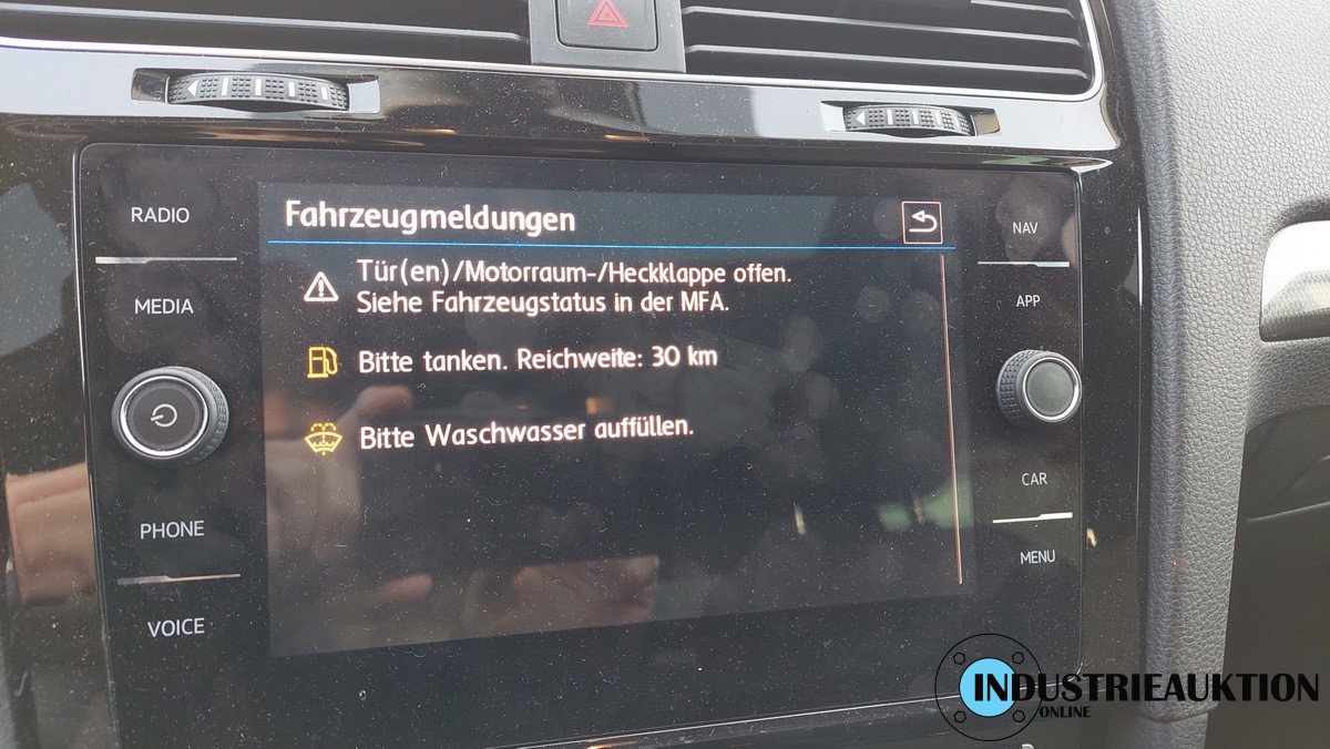 PKW VW Golf VII 1.5 TSI IQ-Drive DSG, EZ 04/19, FG-Nr. WVWZZZAUZKW089672, abgel. Km-Stand 204.028, Benzin, EURO6, HU 07/26, 1498cm³, 110 kW, Schwarz, DSG Getriebe, MF-Lenkrad mit Schaltwippen, Climatronic, Navi, GSD, 8-Fach bereift, 2 Schlüssel, Karosserie mit div. kleinen Beulen, Steinschläge, Frontscheibe mit Steinschlag, Schl-.Nr. 0603/CDO - ZBII bei der Bank