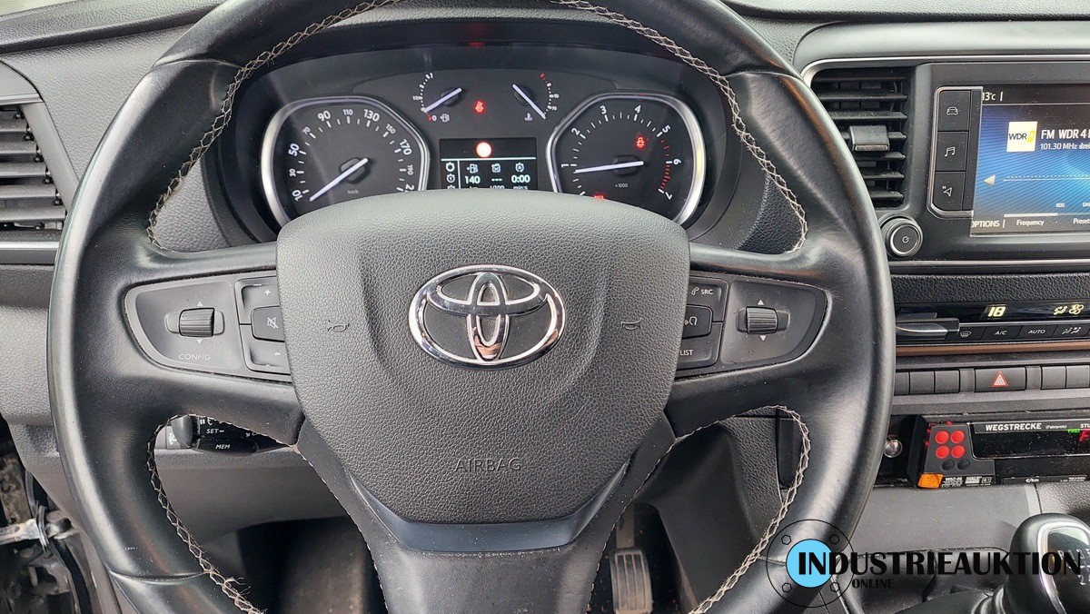 Toyota Pro Ace Verso 2.0 D4D, Mietfahrzeug, amtl. Kennz. E-TR 6008, EZ 09.08.2021, FG-Nr. YARVEAHXKGZ190739, abgel. Km-Stand 181.979, Diesel, EURO6, 1997cm³, 110 kW, Schwarz, Schaltgetriebe, MF-Lenkrad, Head-Up Display, HALE Taxameter, 8-Sitzer, div. Beulen, Kratzer, Lackschäden, obere Schiene Schiebetür rechts n.i.O., lose Räder gehören nicht zum Fahrzeug