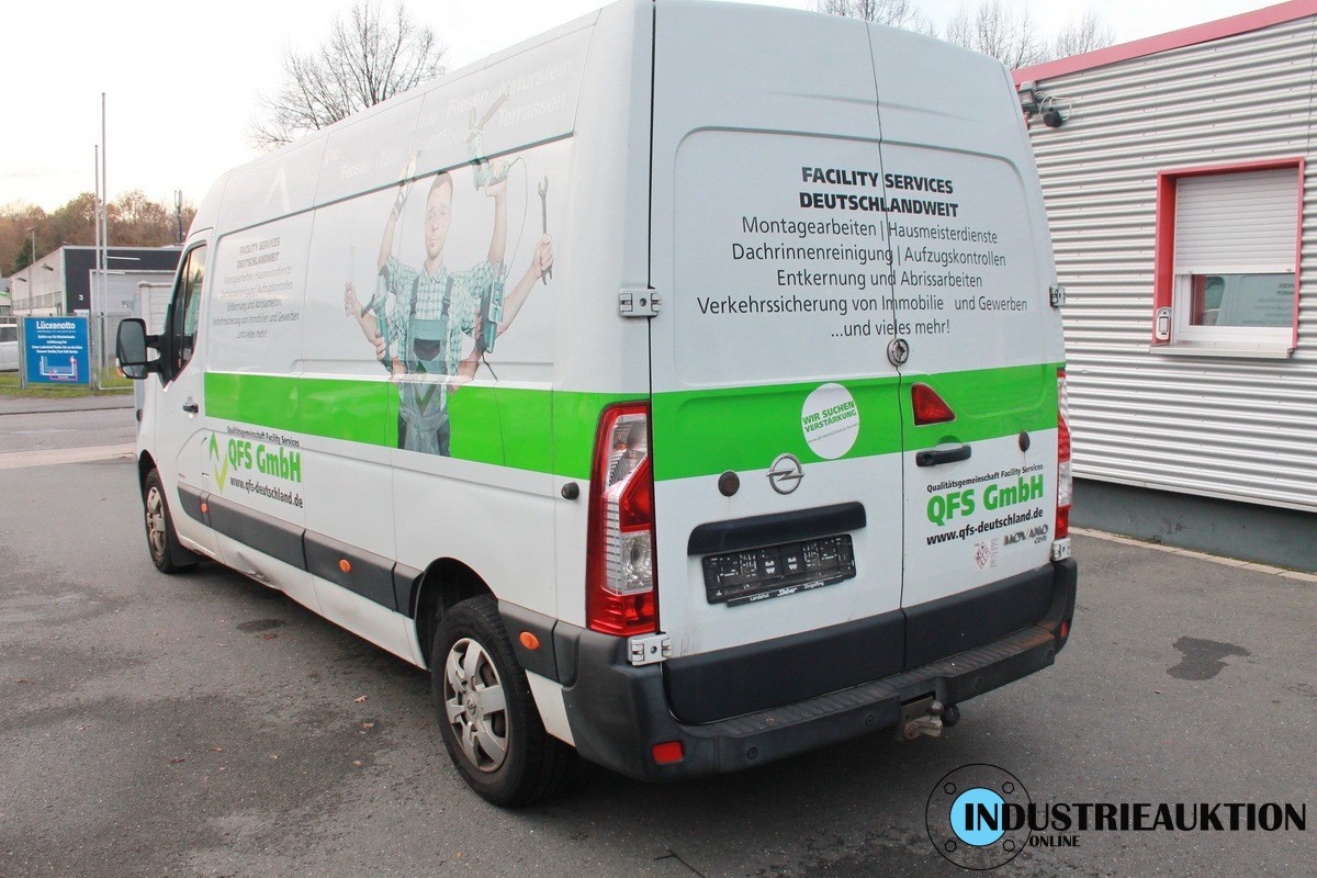 Transporter OPEL Movano, lang/hoch, FIN W0LMRY605HB 122350, EZ 11/16, km-Stand abgel. 267.549, HU 12/26, 2.299 cm³, 96 kW, Klima, Seite links unten verbeult, Schiebetür beschädigt, Beulen, Rost, AHK, 2 Schlüssel, HSN/TSN 0035/BKA