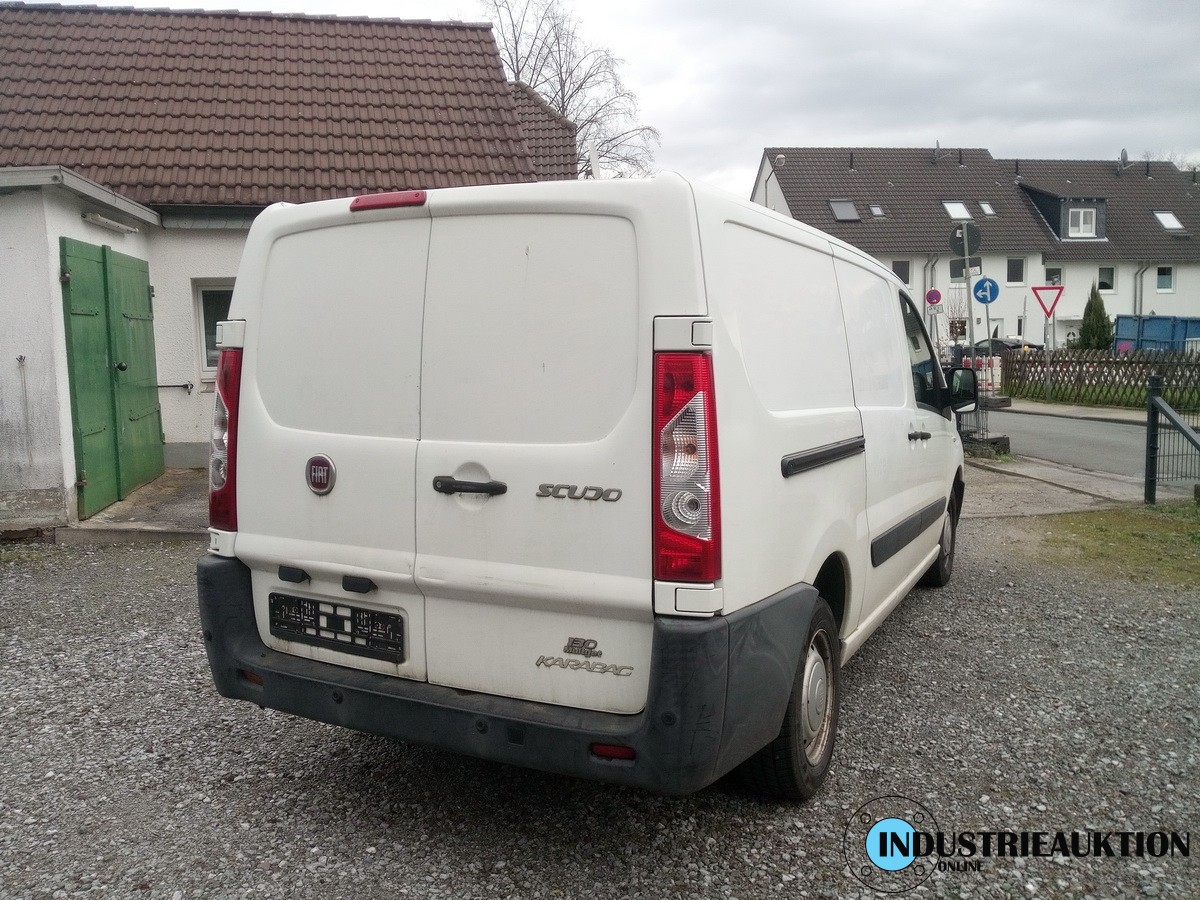 VAN FIAT Scudo 130 Multijet, geschl. Kasten, FG-Nr ZFA27000064324904, EZ 04/13, zul. GG 2.932 kg, abgel. Km-Stand 195.123, Diesel, EURO5, HU 11/23, 1.997 cm³, 94 kW, 6-Gang, gebrauchter Zustand, Rostflecken am Dach, Lenkrad abgegriffen, kleine Beulen, läuft gut, Schl-Nr. 4136/0000