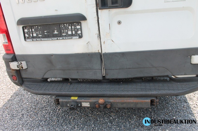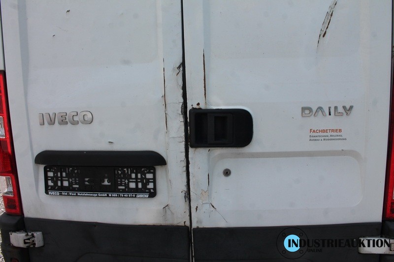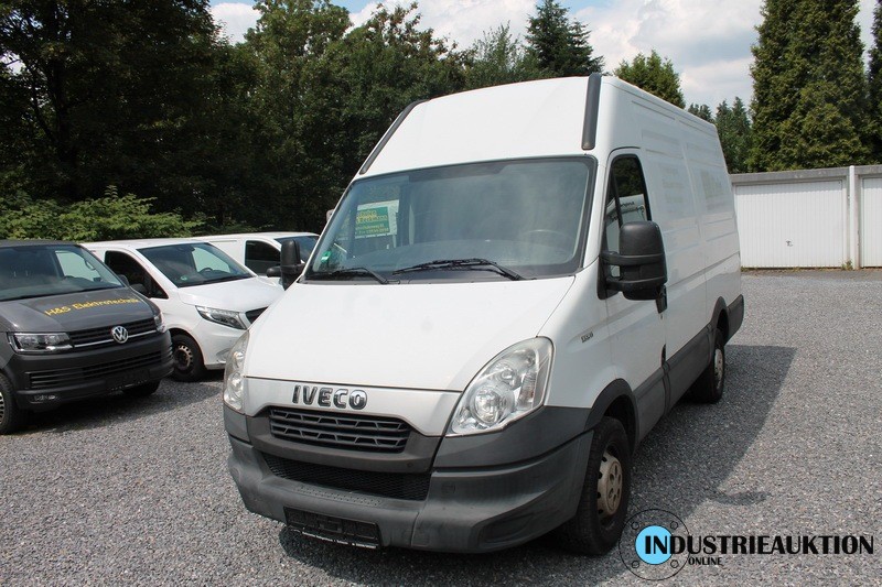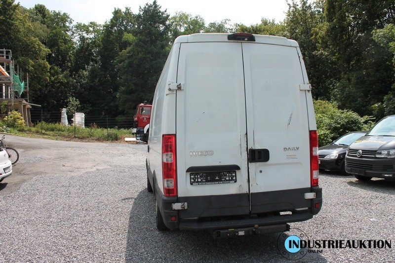 VAN IVECO Daily 35S11, geschl. Kasten, Hoch, Mittellang, FG-Nr. ZCFC357160D 468842, EZ 03/12, abgel. km-Stand 267.812, HU 09/23, Diesel, 2.287 cm³, 78 kW, 3-Sitzer, CD-Radio, Bluetooth, Schwingsitz ISRI, Spiegelheizung, Multifunktionslenkrad, el. Fensterheber, AHK, 5-Gang-Schaltung, el. Außenspiegel, weiß, Schl.-Nr. 4192/000, Macken an Hecktür, angabegemäß Kurzschluss in Anhänger-Steckdose, Schiebetür re. Seite verbeult und lässt sich nicht öffnen, Radkästen innen verbeult, Rostspuren, Kunststoffverkleidung hinten re. lose, Stoßfänger vorne re. eingedrückt, Klappe im Armaturenbrett lose, Außenspiegelgehäuse Fahrerseite gebrochen, Fehlermeldungen: ESP, ABS, ASR und Hillholder nicht verfügbar, Bremsbeläge und Motor kontrollieren lassen