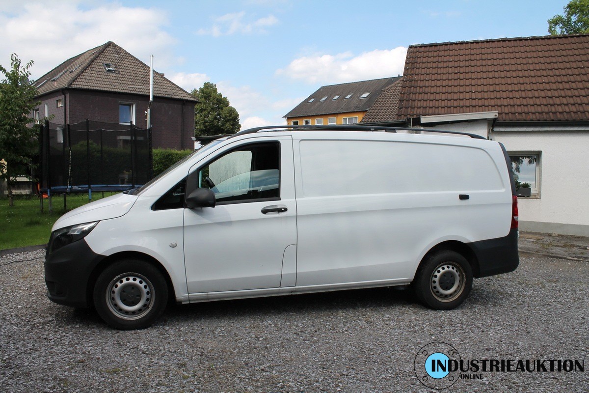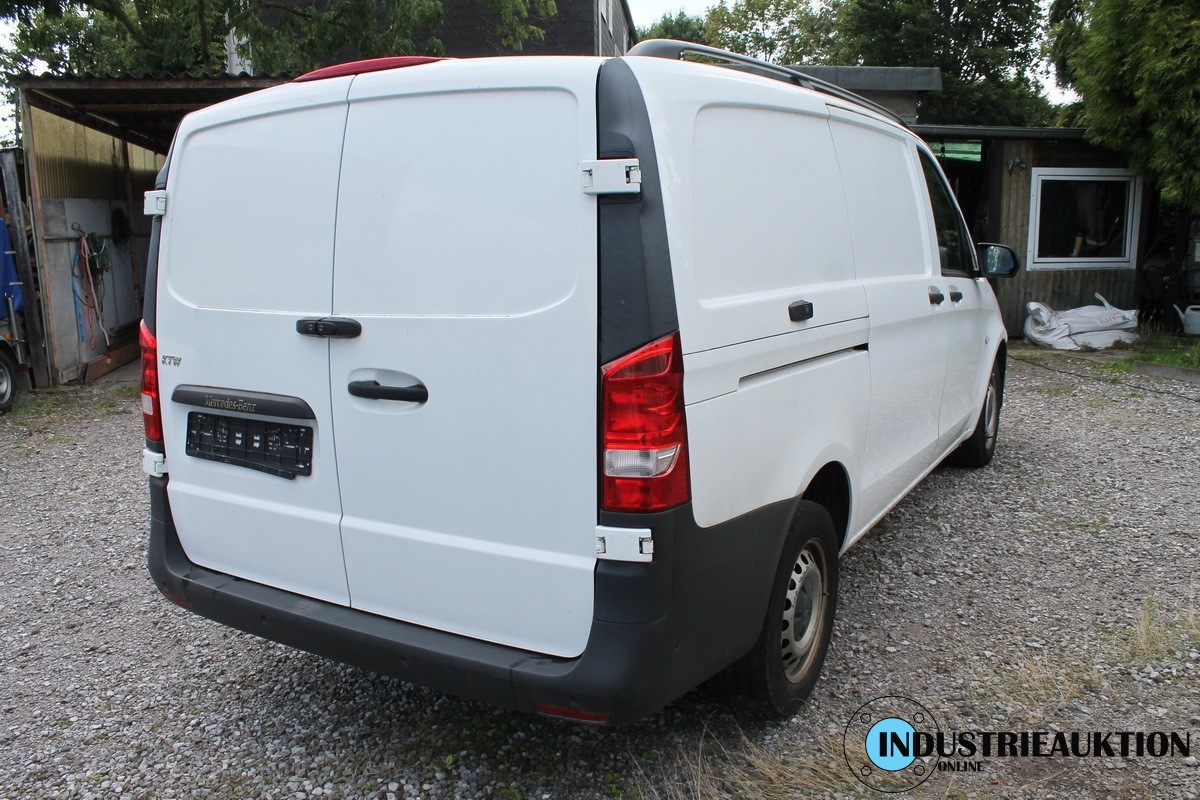 VAN MERCEDS-BENZ Vito 111CDI, geschl. Kasten/lang, FG-Nr. WDF44760313432213, EZ 03/18, zul. GG 2.800 kg, abgel. Km-Stand 89.942, EURO6, Diesel, HU 01/23, 1.598 cm³, 84 kW, Weiß, MF-Lenkrad, PDC, Klima, Tempomat, Sitzhz., Bluetooth, Winterreifen, Profil vorne ca. 5.5mm, hinten ca. 3 mm, kleine Beulen Seitenteil, Radlauf und Dach, Gebrauchsspuren der Laufleistung entsprechend, Batterie defekt, abgemeldet seit 11.05.22, springt mit Überbrückung sofort an, Schl-Nr. 1313/EKK - ZBII bei der Bank