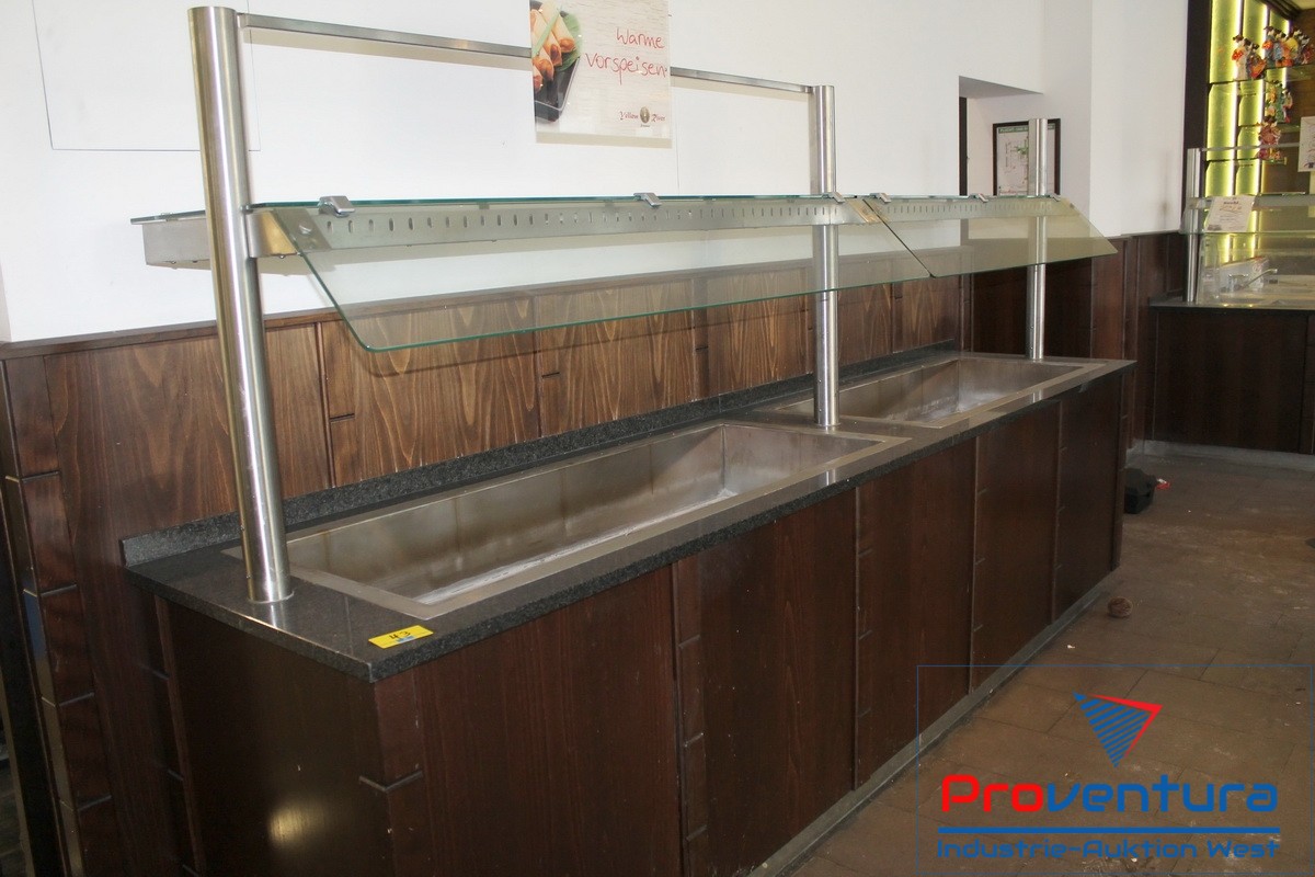 Bain Maries, 2 St., ca. 330x73 cm, 4x GN 1/1 und 4.5x GN 1/1, einseitig Spuckschutz