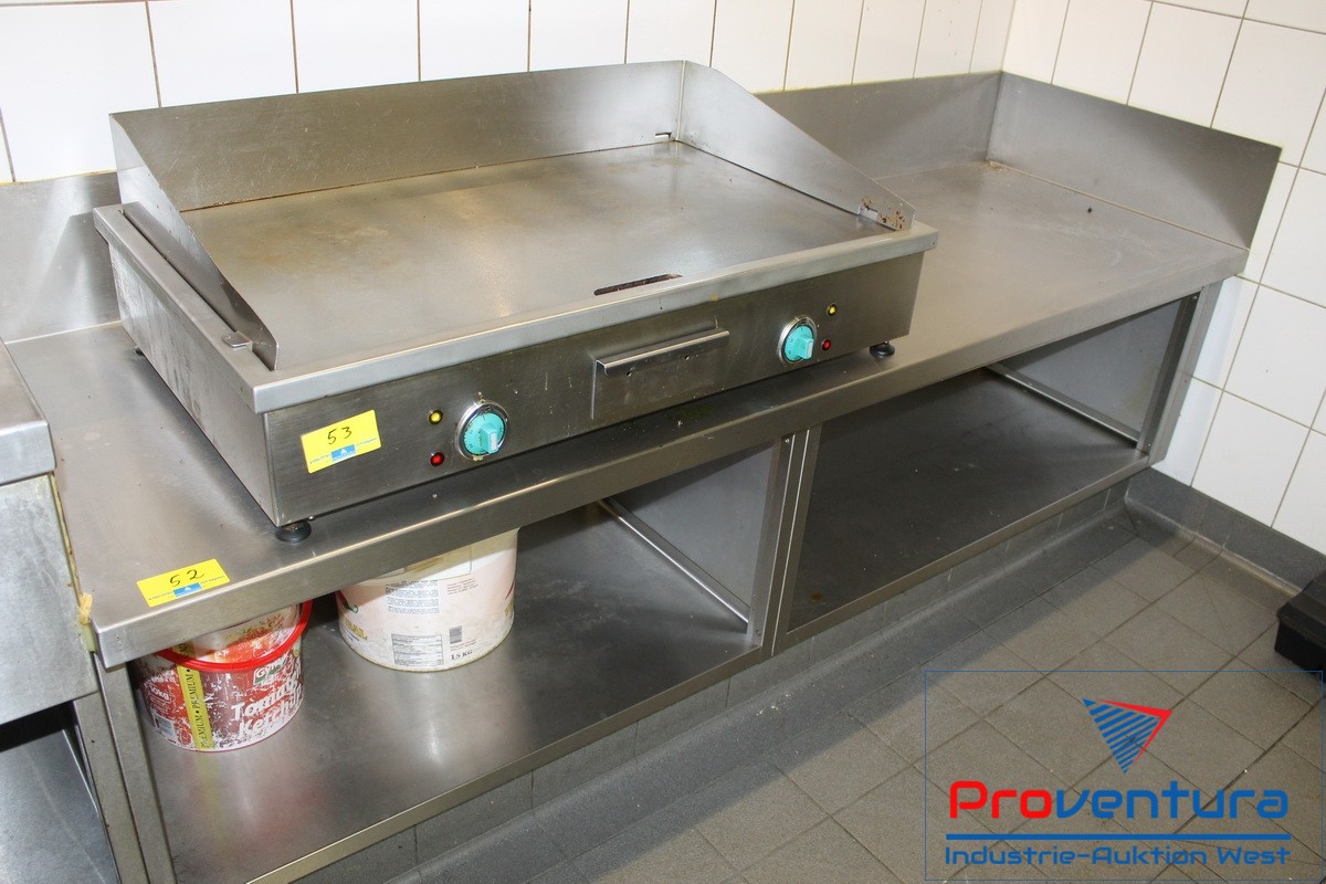 Edelstahl-Unterschrank, ca. 225x70 cm, mit 3-seitiger Aufkantung, ca. 20 cm