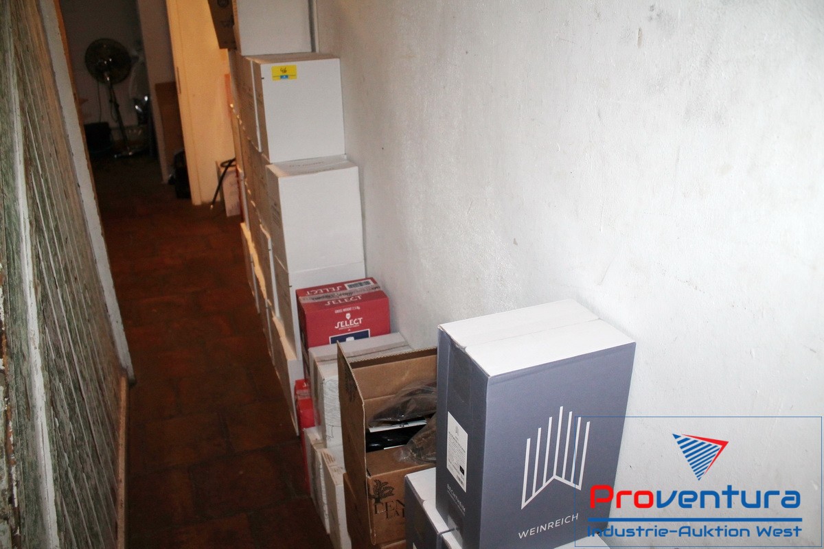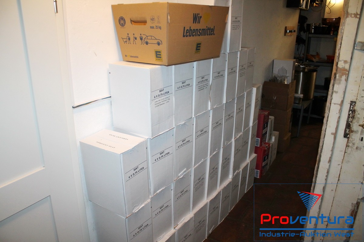 Getränkevorräte; ca. 520 Flaschen Wein und Sekt, ca. 130 Flaschen unterschiedl. Spirituosen, der Sekt ist mit Hausmarke gelabelt