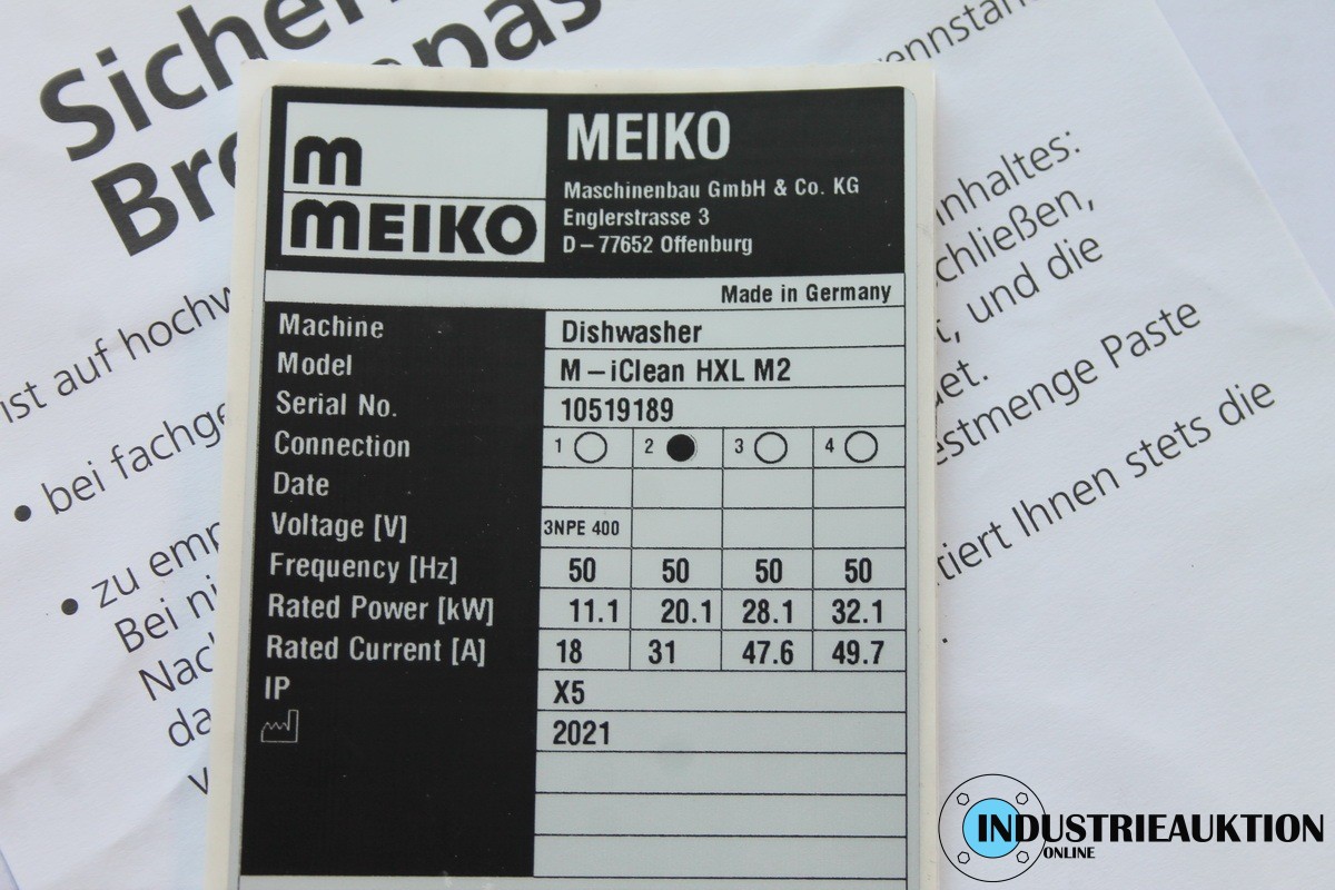 Haubenspülmaschine MEIKO M-iClean H XL M2, für 2 Körbe, Bj. 21, Digital-Steuerung, Haubenautomatik, Wrasenabsaugung, Wärmerückgewinnung, 20 kW, Ablaufrollengang, ca. 8 St. Körbe