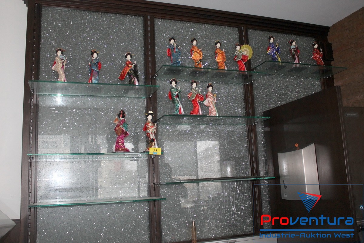 Regal, ca. 18 Glasböden, ca. 71x30 cm, die senkrechten Streben sind fest verbaut, können aber vom Käufer demontiert werden.