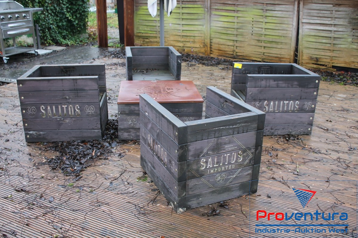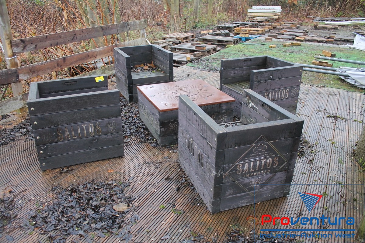 Sitzgruppen SALITOS; 2 St., je 4 Cocktaisessel und Tisch, Polster liegen auf dem Dachboden