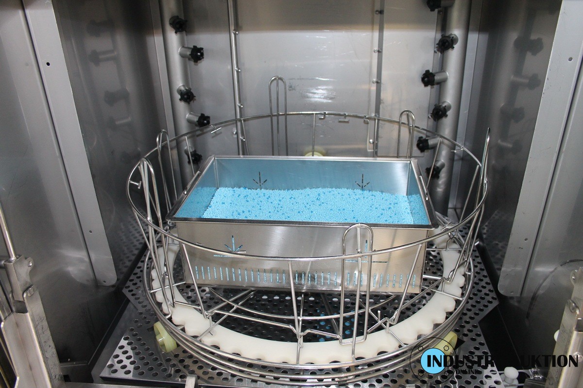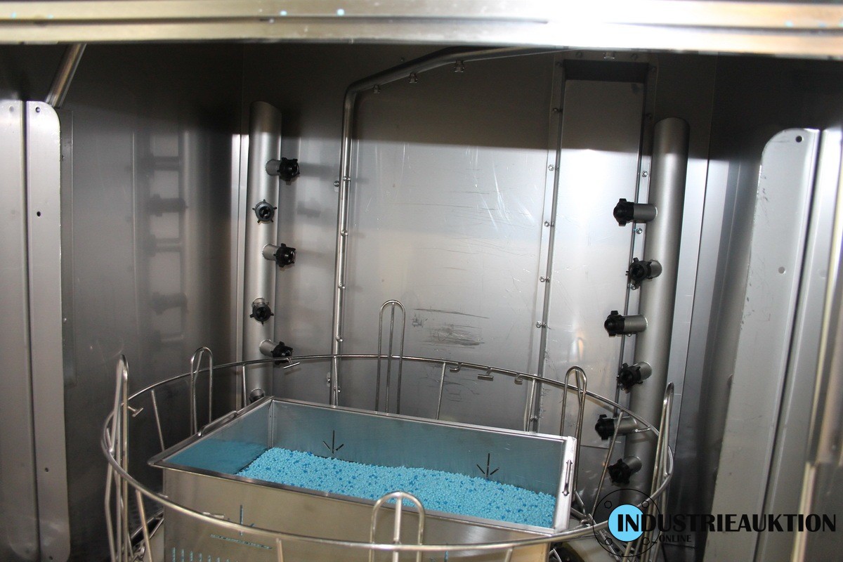 Topf-/Behälterspülmaschine GRANULDISK Granule Smart (Schweden) mit Granulat-Technik , Bj. 16, Waschprogramme von 2 - 5 min, Klarspülwasservolumen 4 - 6 l, Ladevolumen 220 l, Durchmesser 700 cm, Höhe 570 cm, drehender Stahlkorb, 16,5 kW, Kapazität: 6 St. Gastronorm 1/1, zweiter Drehkorb