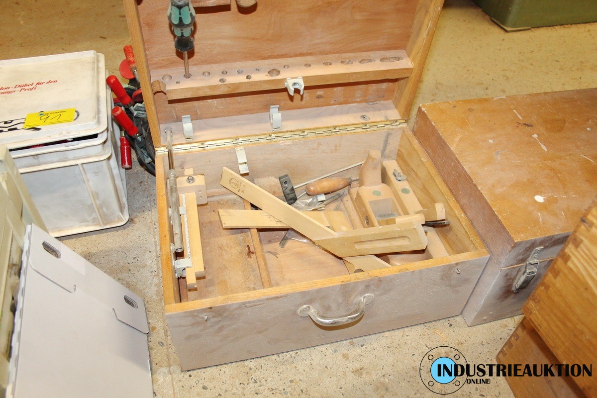 Pos. 085 - 4 Holzkisten/Montageboxen für Schreiner mit Restposten an Werkzeug