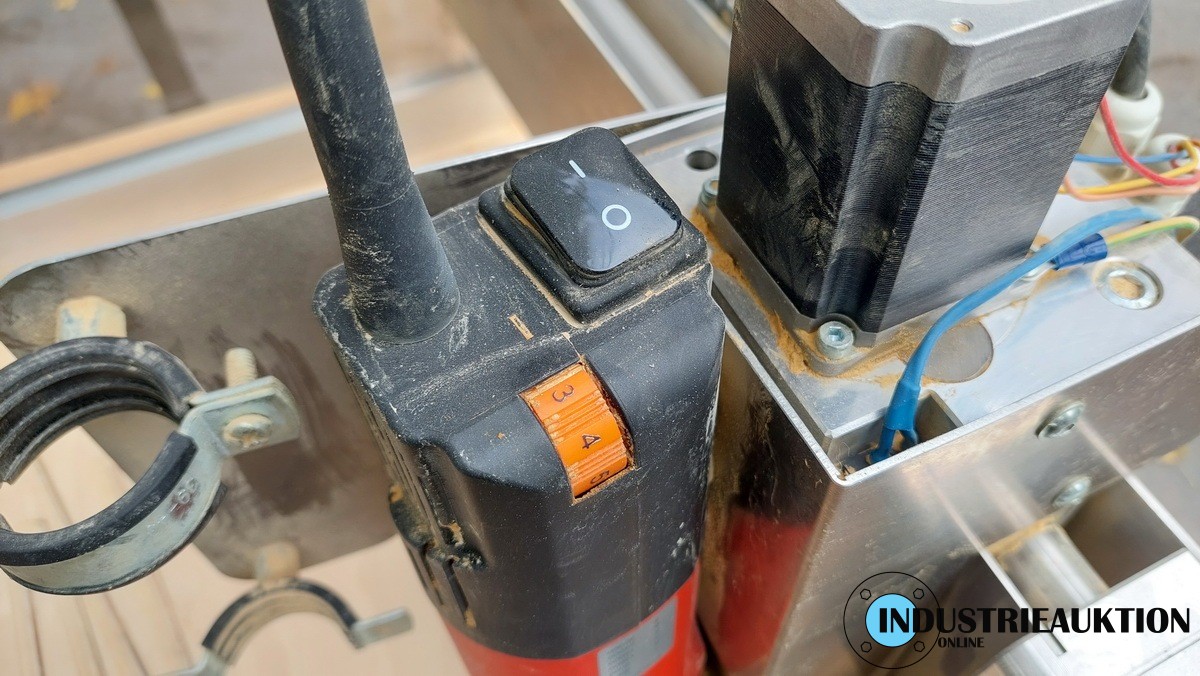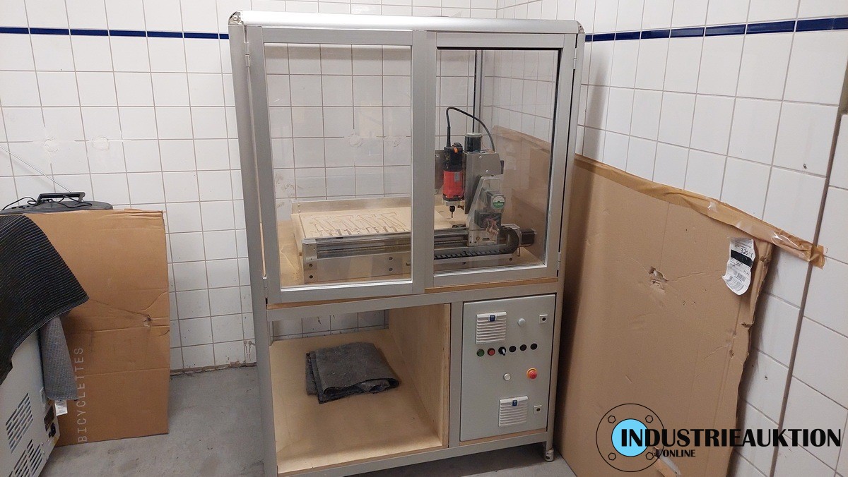 CNC-Portalfräsmaschine ESA 6040, S/N C25MP117007, 3-Achsen Steuerung für Software CNC-Graf 7.1, Vorschub über Kugelrollspindeln mit Schrittmotoren, induktiver Werkzeuglängensensor, Schaltschrank, Fräsmotor SUHNER 1500W, Schutzeinhausung, ca. 107x117x177 cm