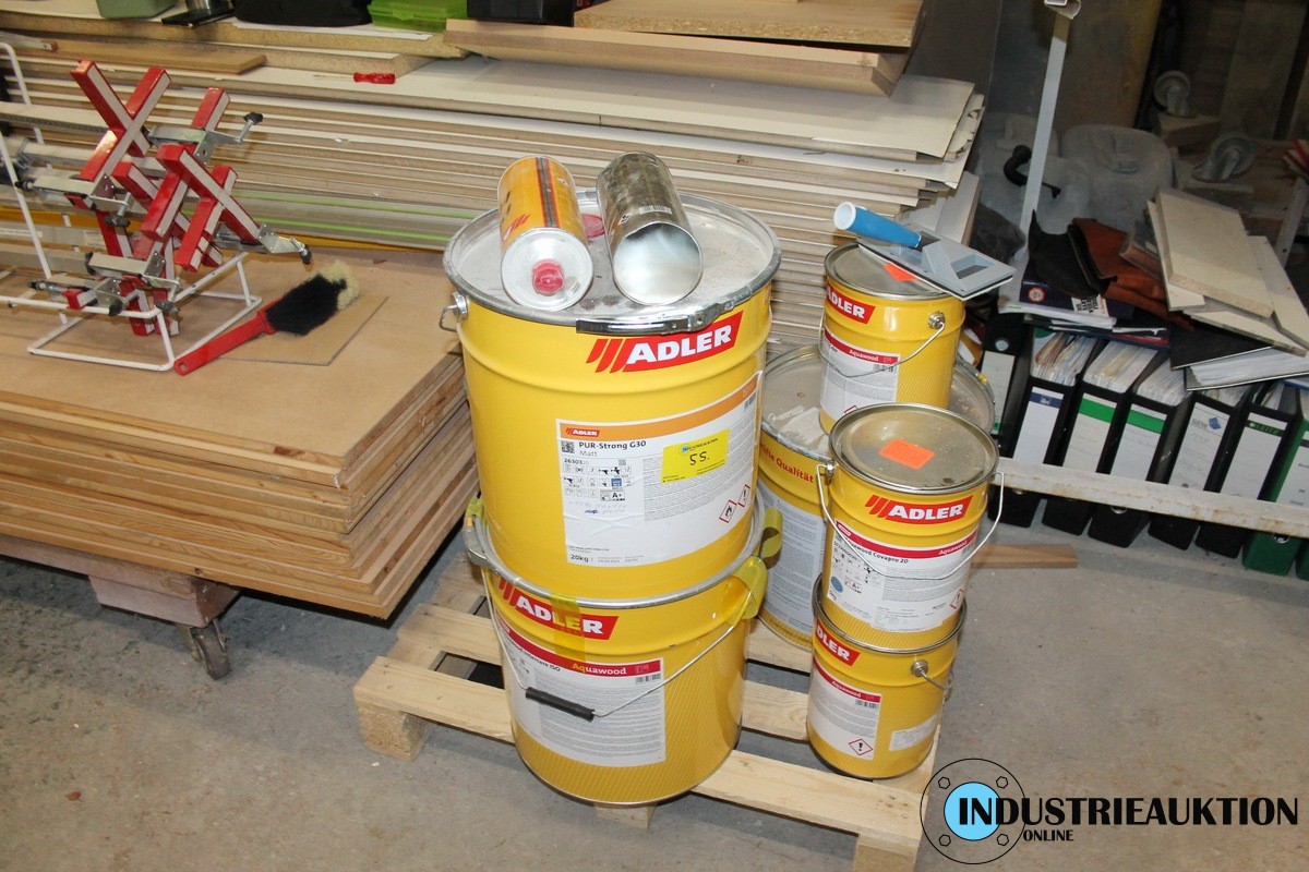 Pos. Lacke, Adler u.a. PUR-Strong G30, ISO Weiß Aqua Wood, Cova Pro Verkehrsweiß, Anbrüche