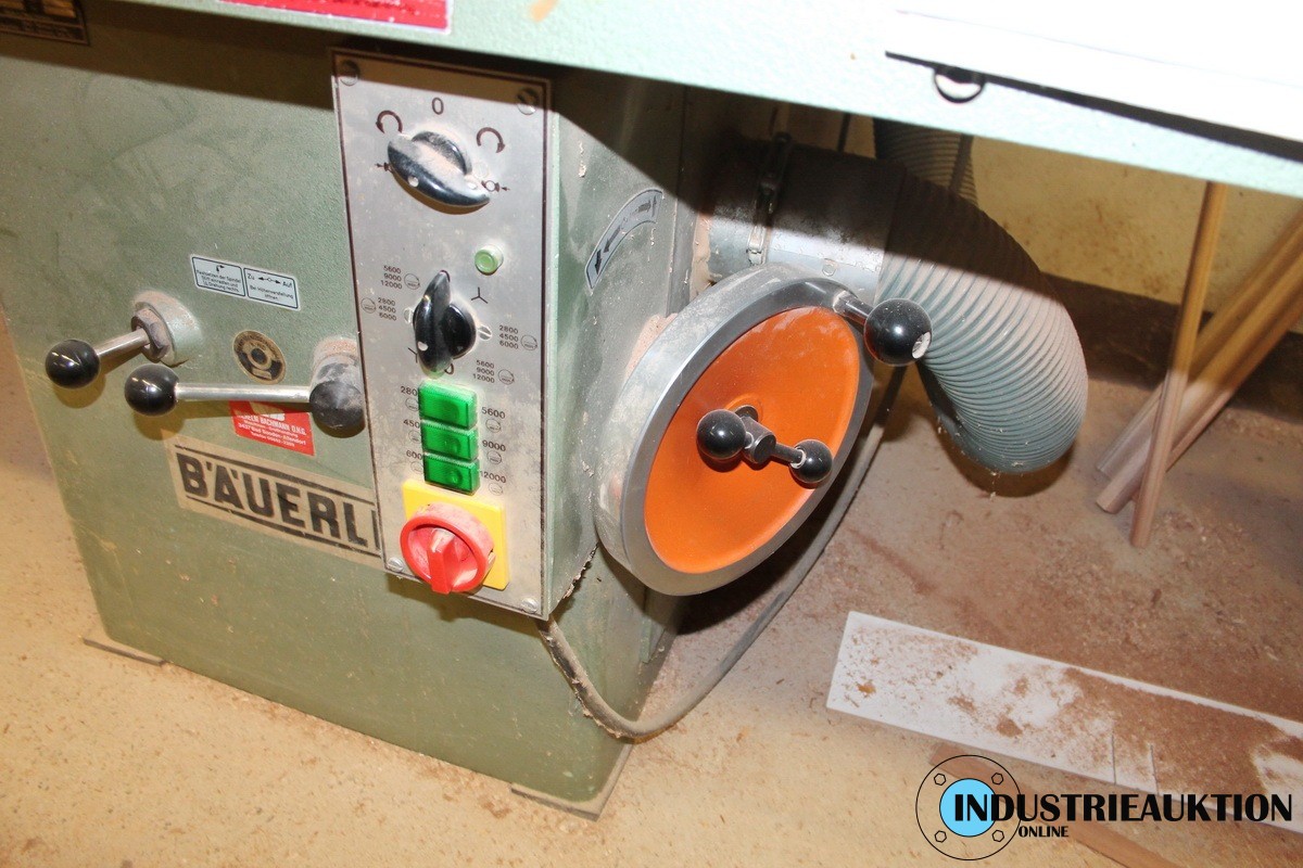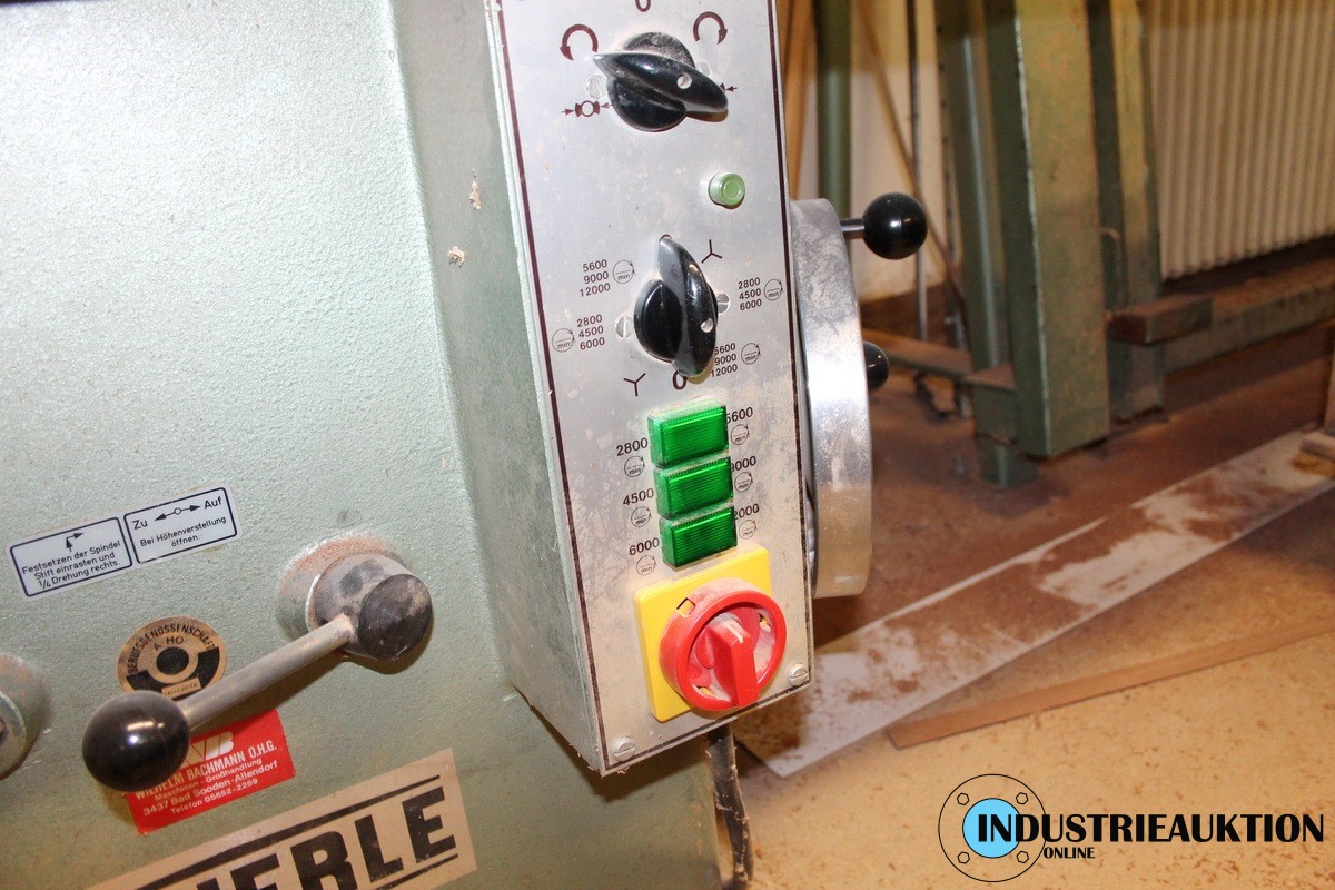 Tischfräse Bäuerle SFM, Bj. 81, 6-Rollen Vorschub Haffner, Typ 919, Drehzahl Vorwahl von 2800-12000 Umdrehungen