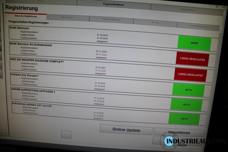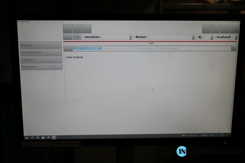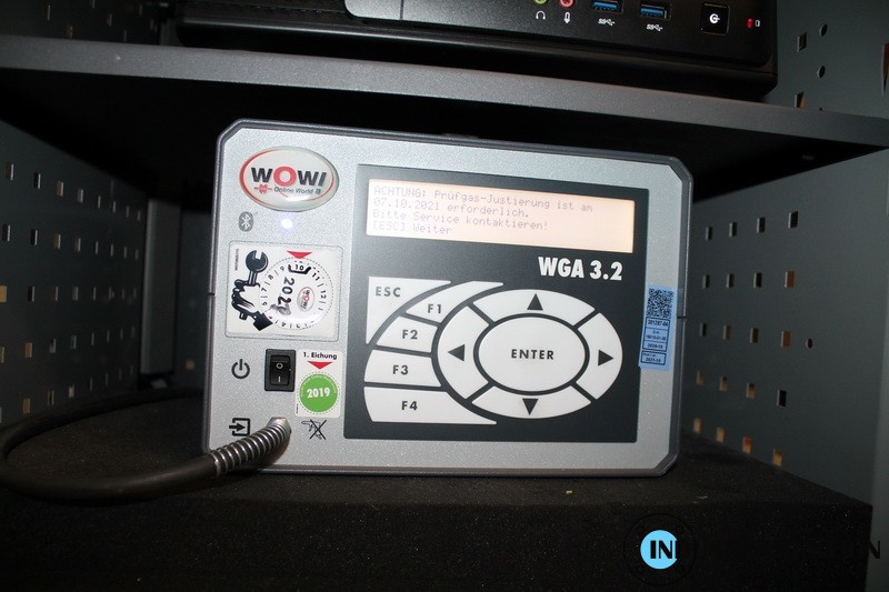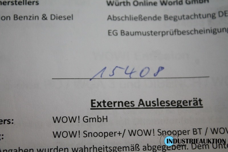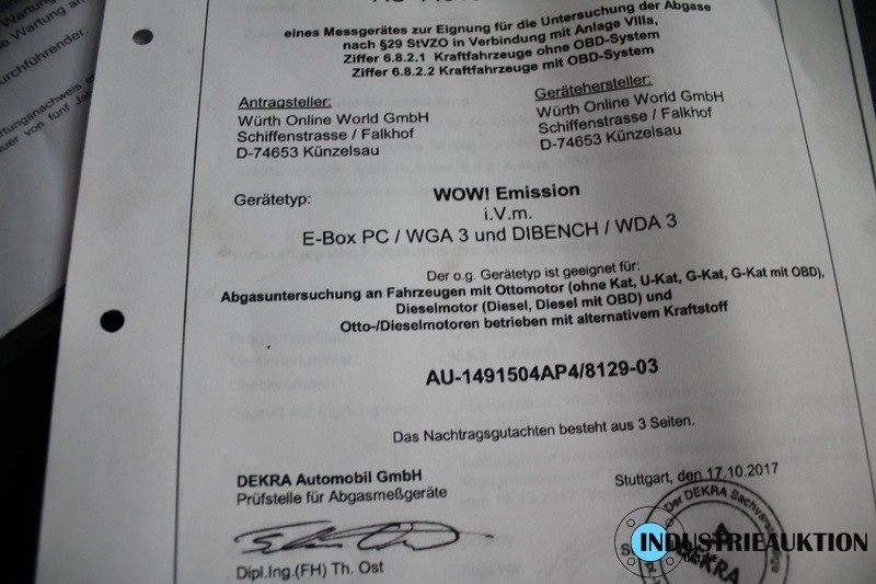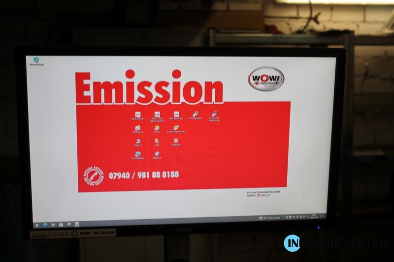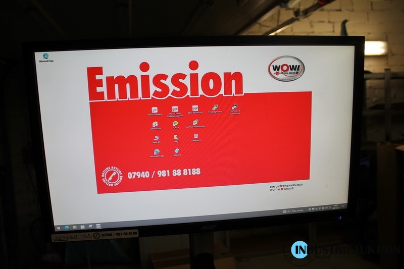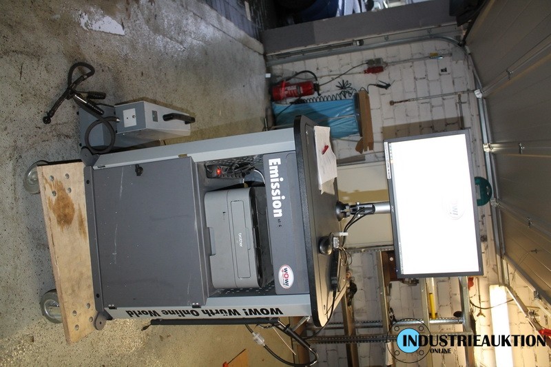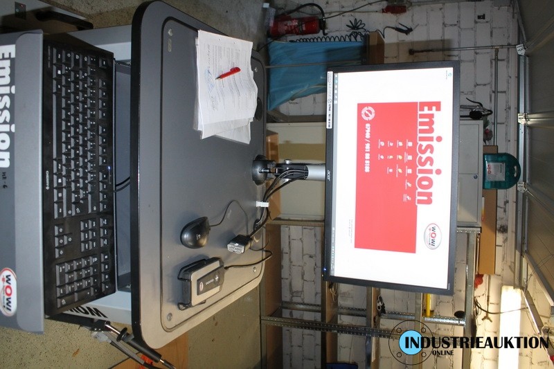 AU-Kombi Tester Basic, gebraucht, PC mit 24" Monitor, mobiles 4-Gas-Infrarot-Abgasmessgerät WGA 3.2 (PTB / DEKRA zugelassen) mit Display inkl. hochwertiger Vitonschlauch und verstärkter Abgasmesssonde, Laserdrucker BROTHER, Snooper+ Diagnosetool, Kabelloses Drehzahl- und Temperaturerfassungsmodul DTB-Box. Drehzahlerfassung über Batterieoberwelligkeit, Triggerzange (opt.), TD/TN-Rechtecksignale, Klemme 1 (opt.), Wartung/Eichung fällig