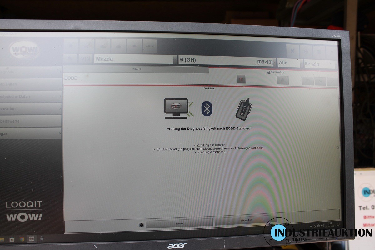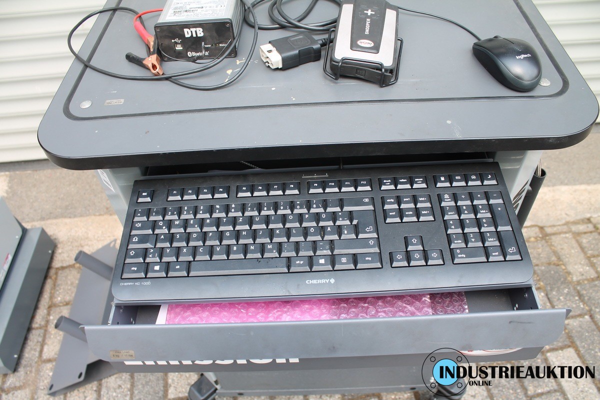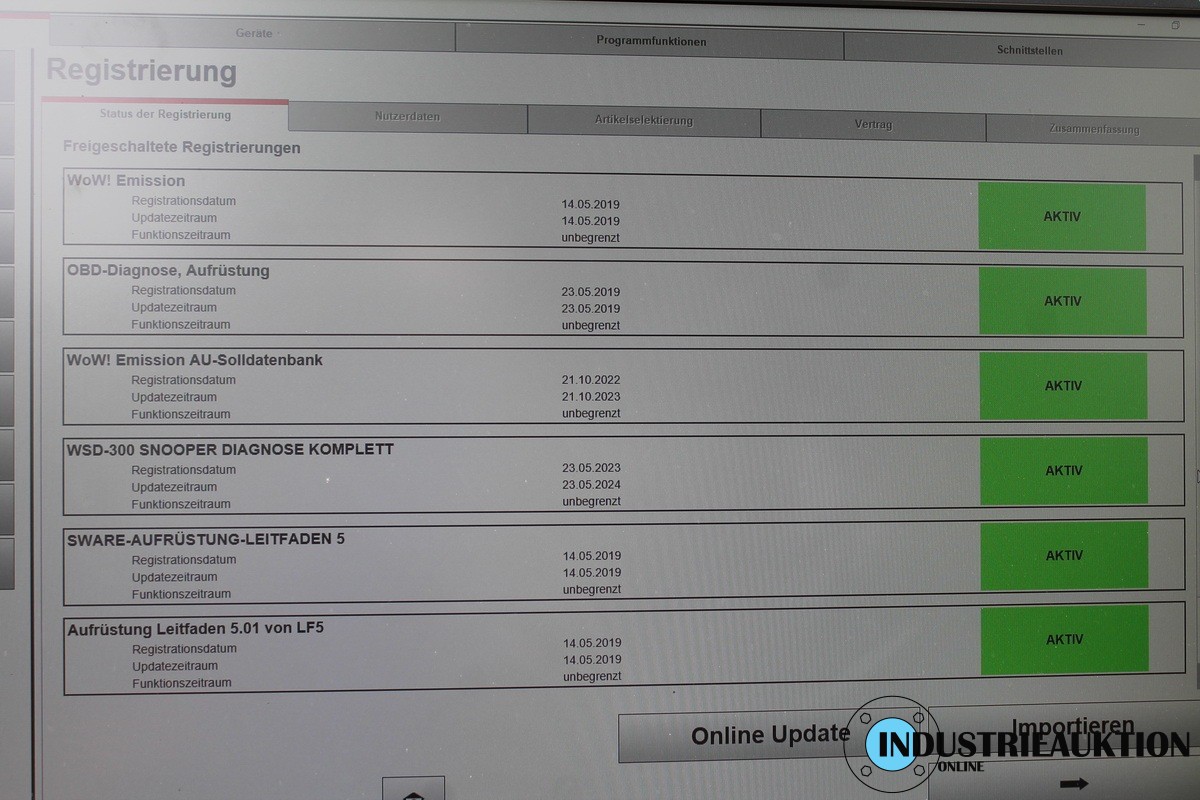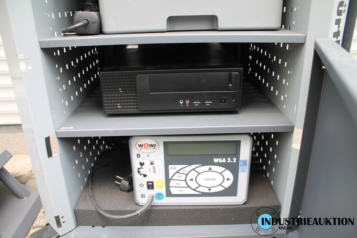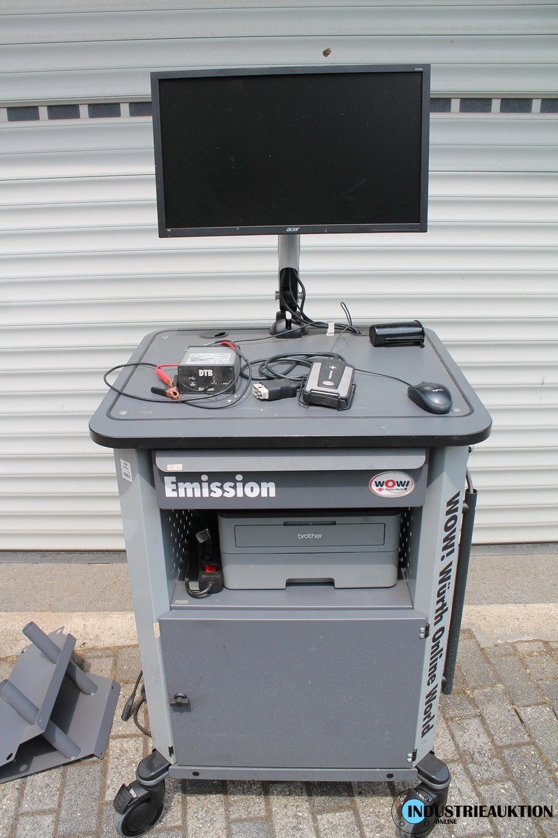 AU-Kombi Tester WÜRTH Basic, Geräte-Nr. 14950, gebraucht, PC mit 24" Monitor, Laserdrucker BROTHER, mobiles 4-Gas-Infrarot-Abgasmessgerät WGA 3.2 (PTB / DEKRA zugelassen) mit Display, Abgasmesssonde, Kabelloses und mobiles Dieselabgasgerät WDA 3, für Pkw und Nfz, Halterung und Ladestation am Werkstattwagen, Snooper+ Diagnosetool, Kabelloses Drehzahl- und Temperaturerfassungsmodul DTB-Box.
