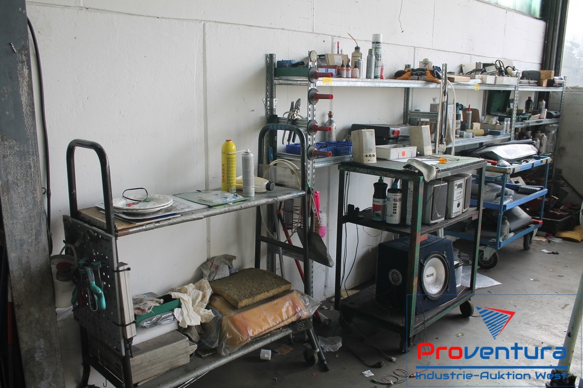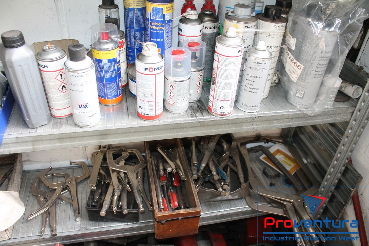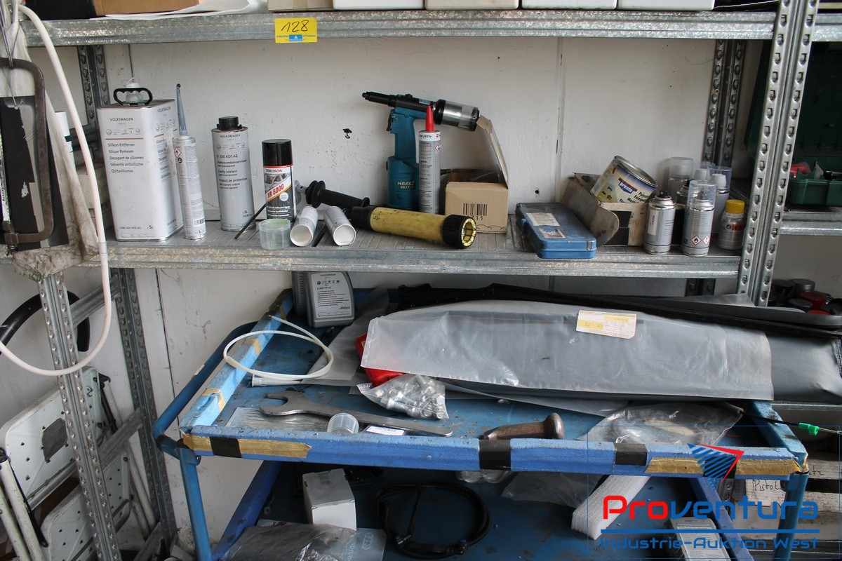Einrichtung der Karosseriebauecke, Wandregale mit Werkzeugen, Kartuschenpressen, Kleinteile