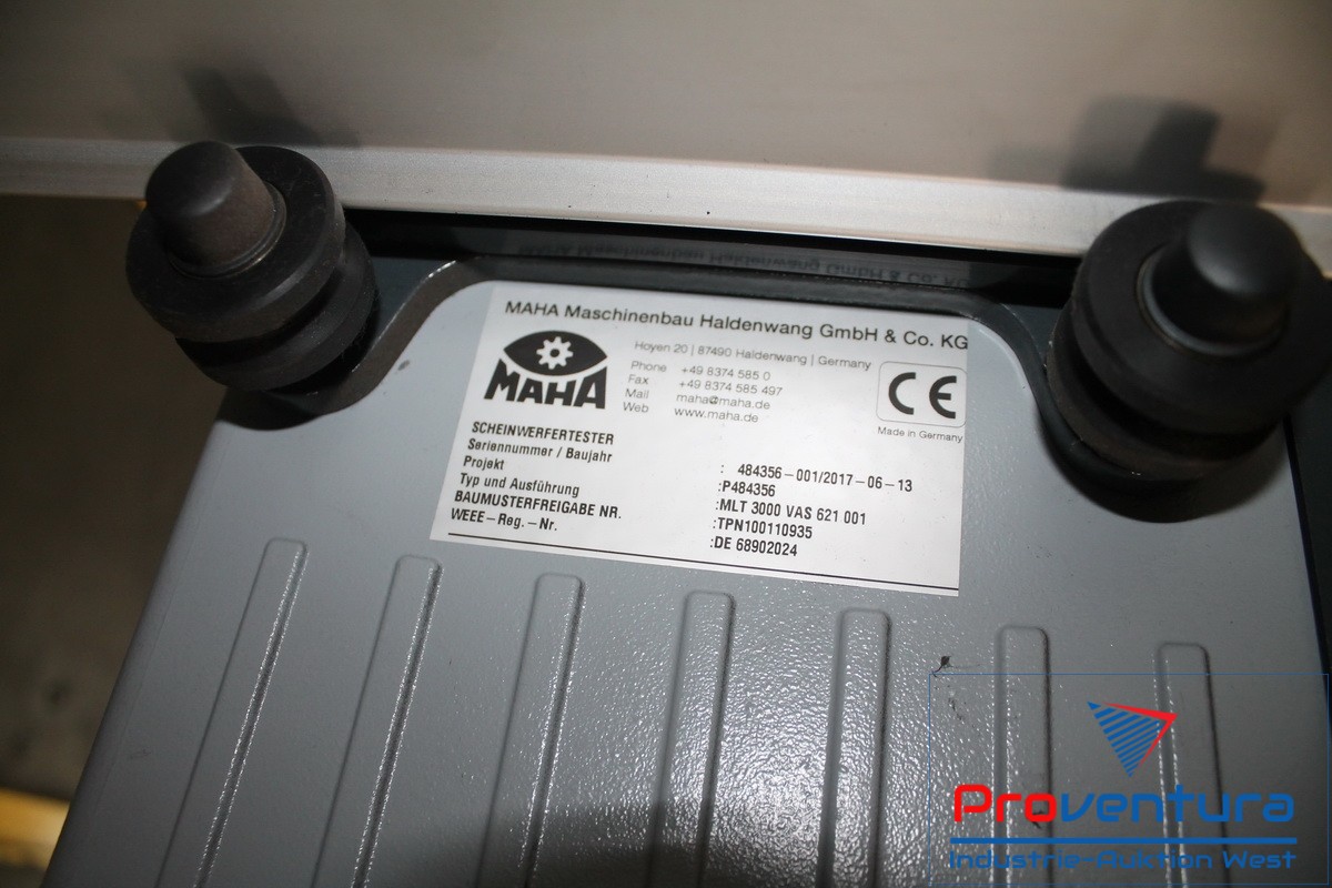 Scheinwerfertester MAHA VAS 621001, Bj. 17, auf Bodenschienen verfahrbar, NP € 6.697,31, reparaturbedürftig